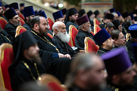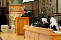 Далее с докладом выступил митрополит Крутицкий и Коломенский Павел, который представил обзор деятельности Московской митрополии — межъепархиальных и епархиальных отделов — за прошедший год.
