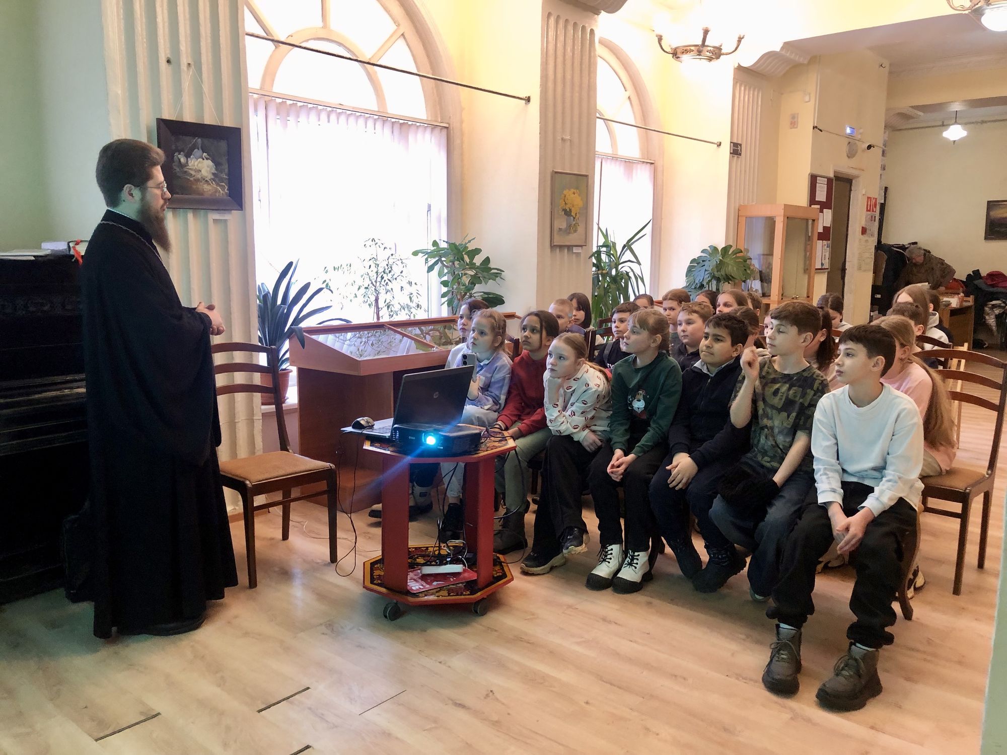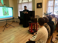 Отец Димитрий поздравил ребят с праздником, рассказал о духовном смысле и значении событий праздника, объяснил, почему День православной молодёжи приурочен к празднику Сретения Господня и ответил на вопросы.