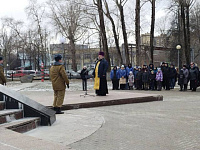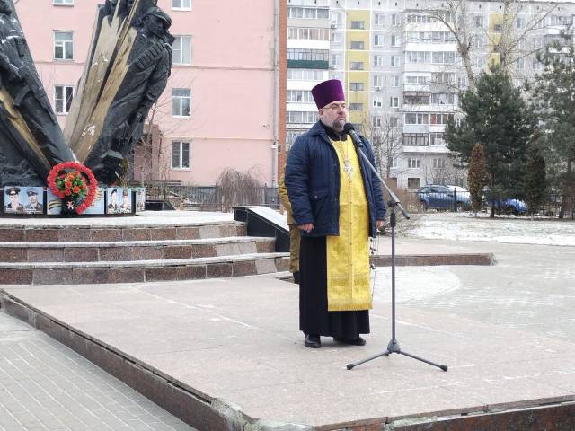 Отец Сергий совершил литию и призвал хранить в сердцах память о тех, кто остался на фронтах войны, беречь и любить, оберегать свою землю, помнить о вере, которая спасала воинов от пуль, о силе молитвы и той любви, «которой нет больше той любви, как если кто положит душу свою за друзей своих».