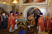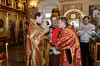 По окончании Божественной литургии был отслужен праздничный молебен священномученику Александру и провозглашены многолетия Святейшему Патриарху Московскому и всея Руси Кириллу, Высокопреосвященнейшему митрополиту Крутицкому и Коломенскому Павлу и Преосвященнейшему епископу Сергиево-Посадскому и Дмитровскому Кириллу.