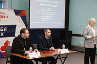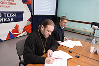 После официальной части состоялось первое мероприятие в рамках данного соглашения – «Задай вопрос священнику». Участники встречи смогли пообщаться в неформальной обстановке с благочинным 1-го Воскресенского церковного округа протоиереем Сергием Якимовым. Эта встреча позволила молодым людям получить ответы на важные для них вопросы, касающиеся жизни, веры и нравственности.