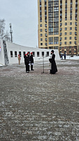 Отец Павел совершил у мемориала заупокойную литию по погибшим воинам и обратился к присутствующим с пастырским словом.