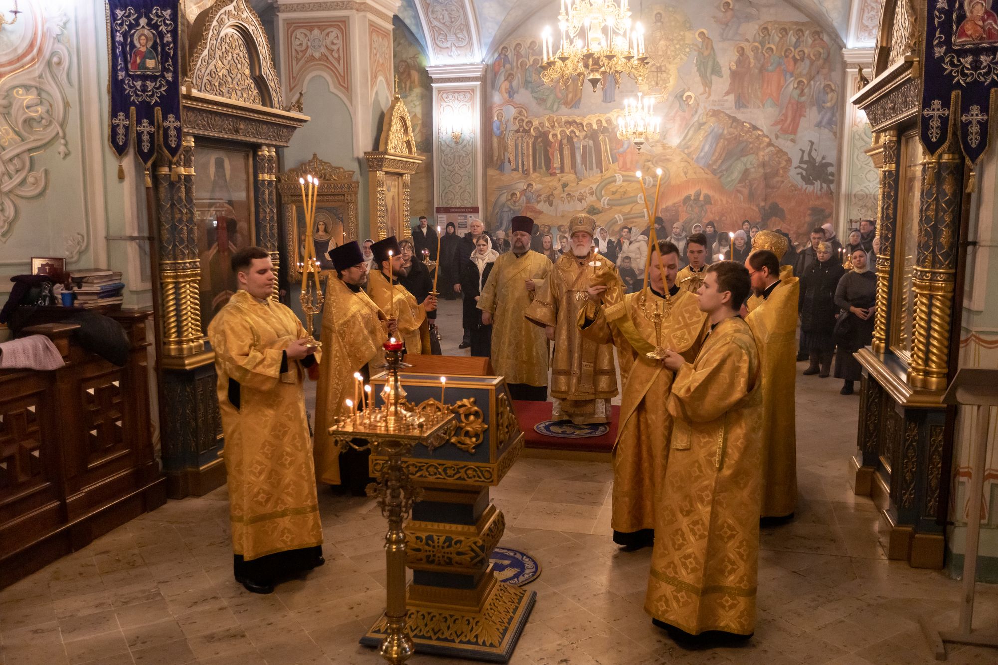 22 февраля 2025 года, накануне Недели мясопустной, о Страшном Суде, митрополит Крутицкий и Коломенский Павел возглавил всенощное бдение в Тихвинском храме Успенского кафедрального собора города Коломны.
