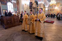 Богослужебные песнопения исполнил соборный хор под управлением Наталии Камышниковой.