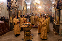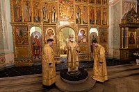 Его Высокопреосвященству сослужили: секретарь Коломенского епархиального управления, ключарь собора иерей Андрей Згонников и клирики собора.