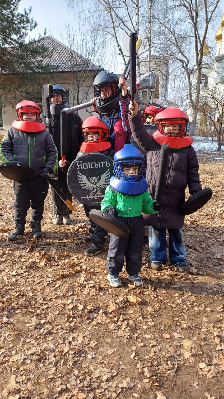 Забавы для детей традиционно организовывали родители и педагоги, создавая поистине праздничное настроение. Особую атмосферу празднику придали ребята из Клуба современного мечевого боя "Неясыть" во главе с руководителем Николаем Цыпилевым.