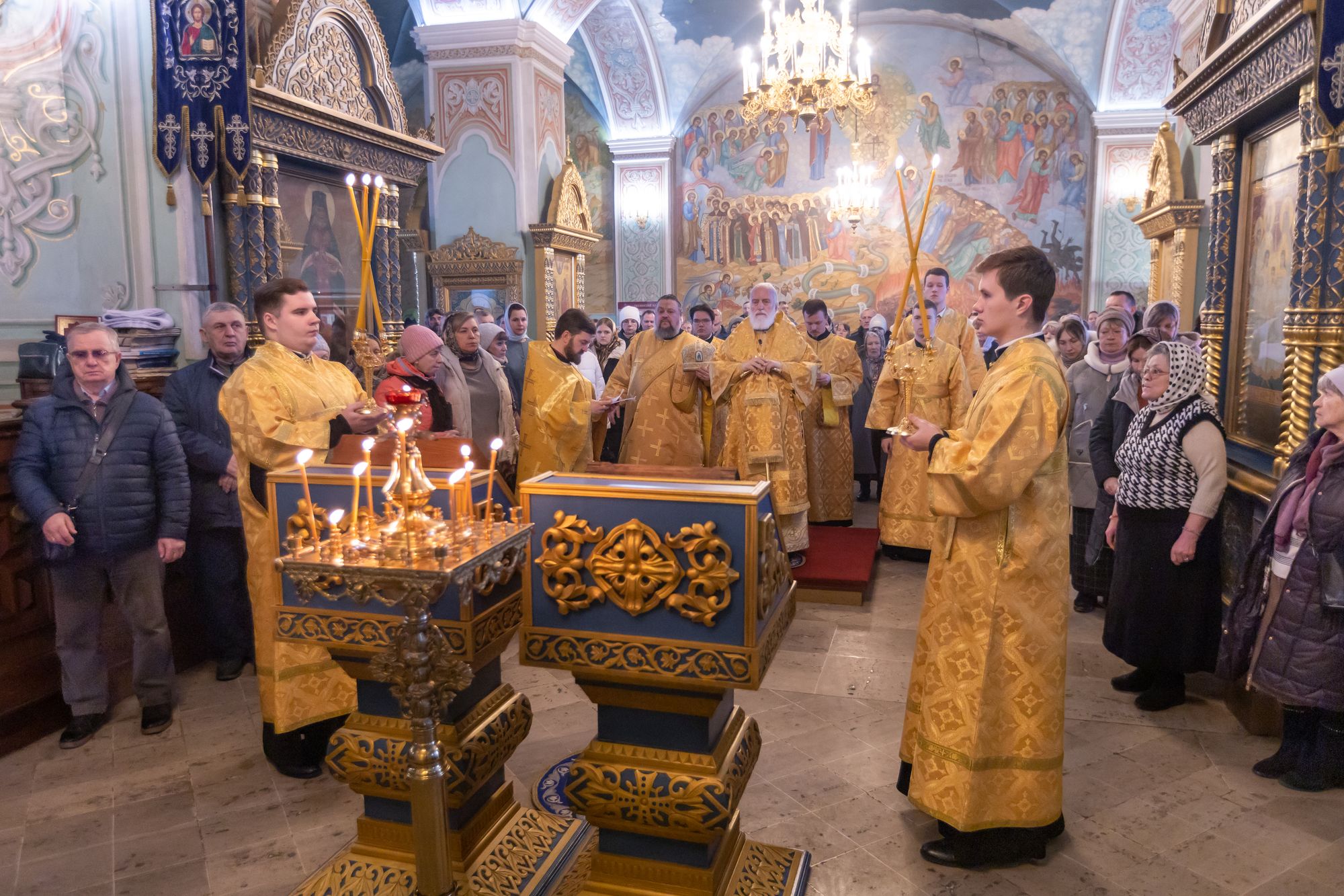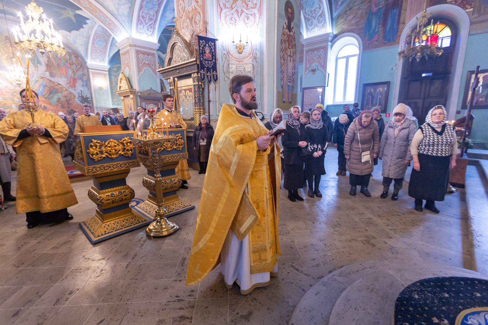 Богослужебные песнопения исполнил соборный хор под управлением Натальи Камышниковой.