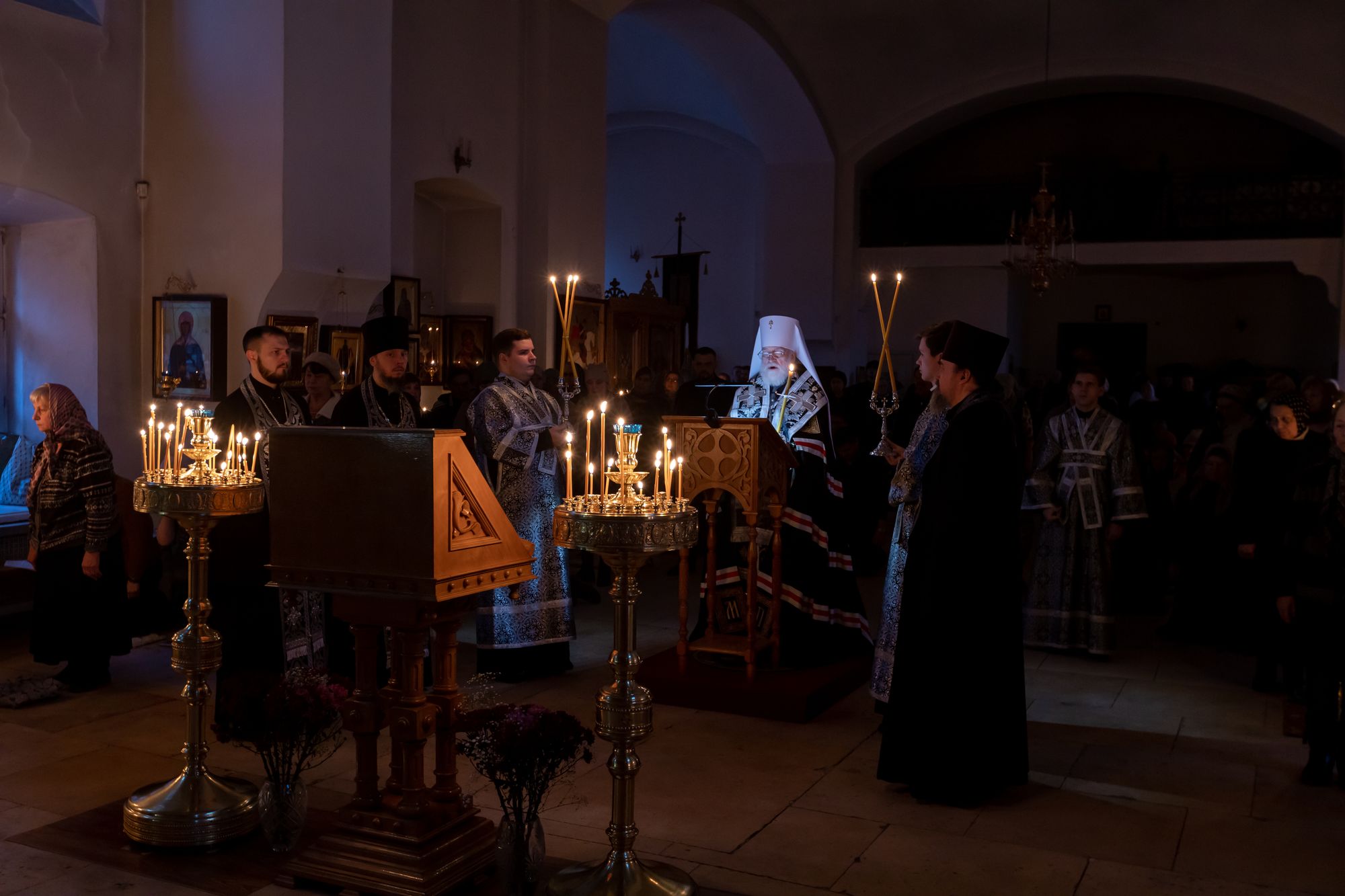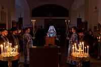 5 марта 2025 года, в среду первой седмицы Великого поста, митрополит Крутицкий и Коломенский Павел совершил чтение третьей части Великого покаянного канона преподобного Андрея Критского и молился за чинопоследованием великого повечерия в Петропавловском храме города Коломны.