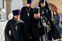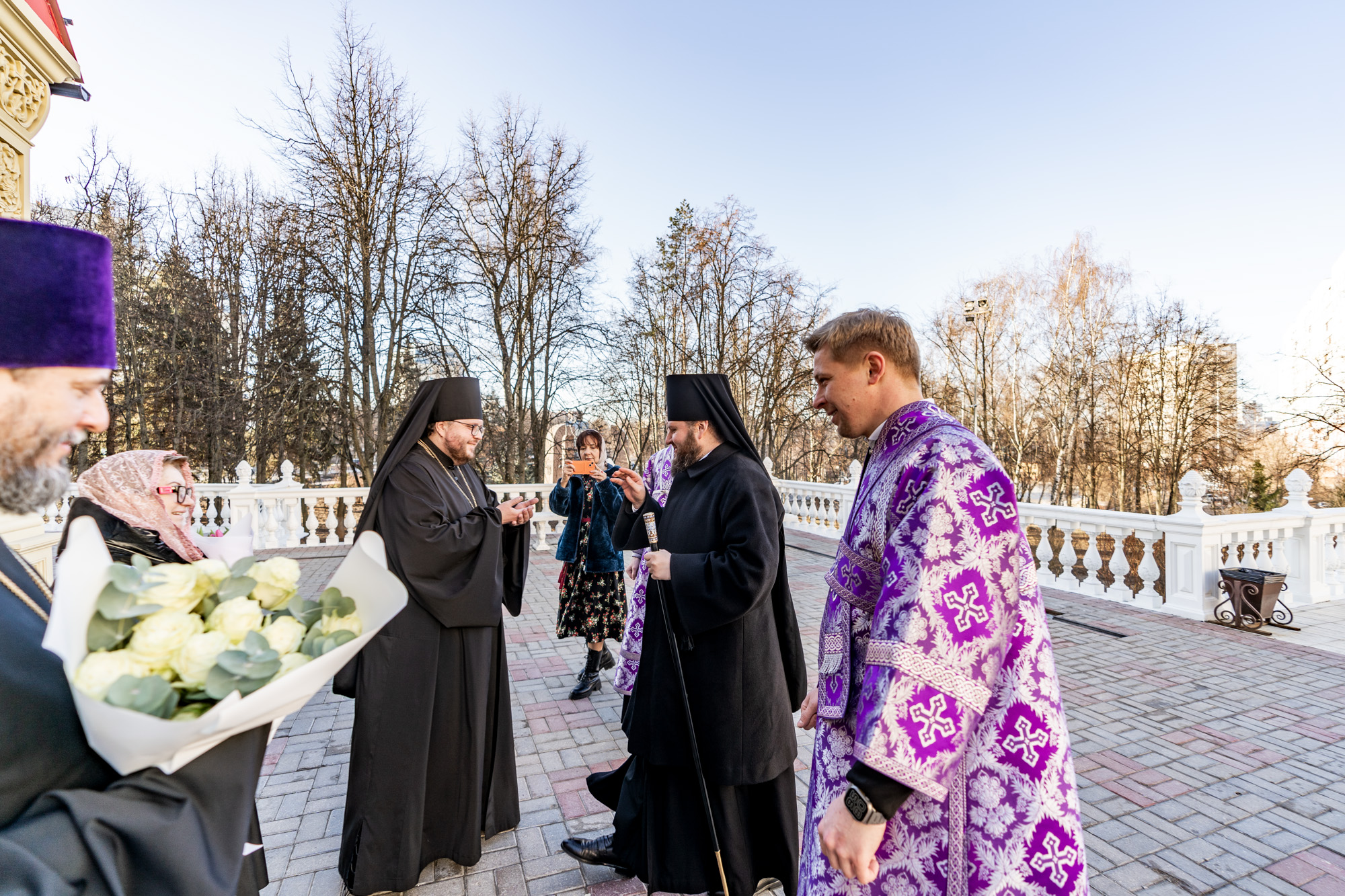 Его Высокопреосвященству сослужили благочинный Видновского церковного округа иеромонах Софроний (Горохольский), настоятель Георгиевского храма протоиерей Михаил Егоров и клирики Видновского благочиния.