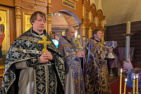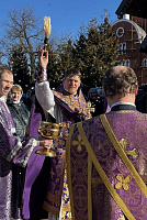 По заамвонной молитве был совершён крестный ход вокруг храма. В завершение богослужения иерей Павел поздравил прихожан с престольным праздником и был особенно рад увидеть в храме много счастливых женщин. После Литургии для богомольцев было организовано вкусное постное угощение.