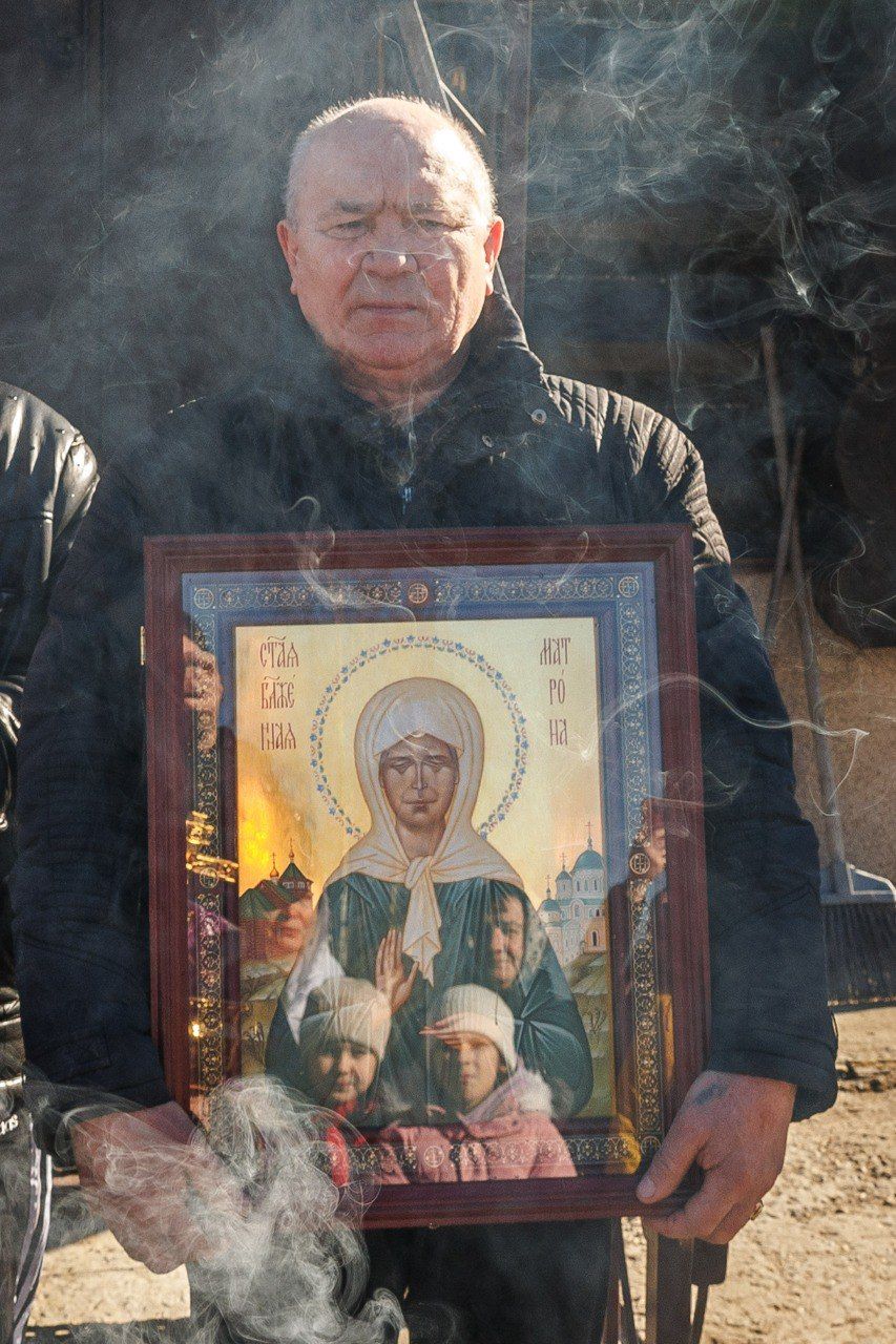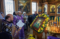 По окончании богослужения состоялся уставной крестный ход, после чего отец Андрей преподнёс в дар приходу икону, написанную благодетелями для храма, и поздравил всех с праздником.
