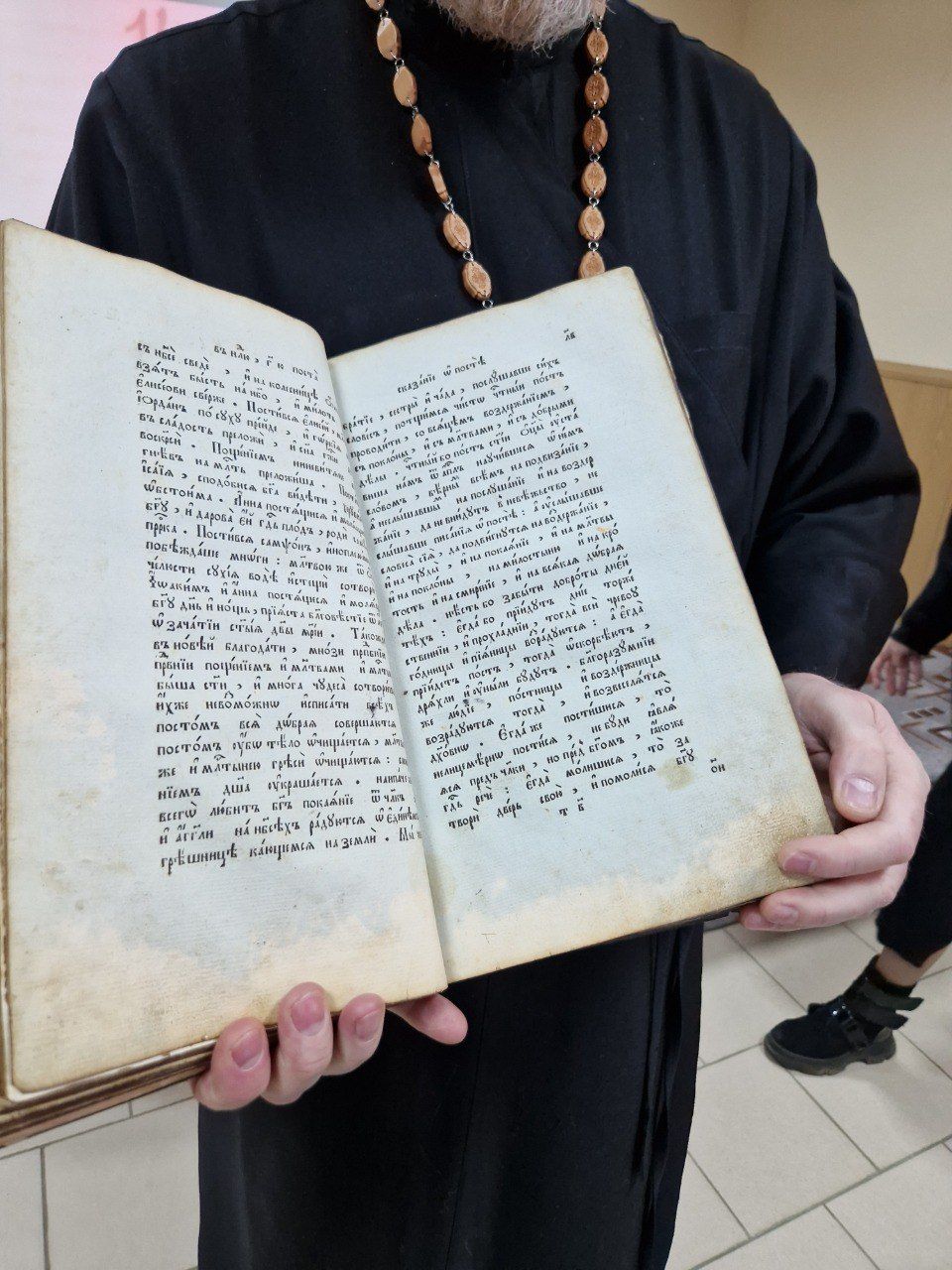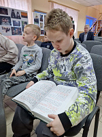 Библиотекарь, прихожанка Успенского храма Н. В. Родникова провела для гостей час истории, посвящённый Дню православной книги. Дети узнали о первой на Руси типографии, о первопечатнике Иване Фёдорове, о первой датированной печатной книге «Апостол», ознакомились с книжным фондом библиотеки, с литературой об известных русских святых - преподобном Сергии Радонежском, блаженном Василии Московском чудотворце и посмотрели видео-презентацию об их жизни.