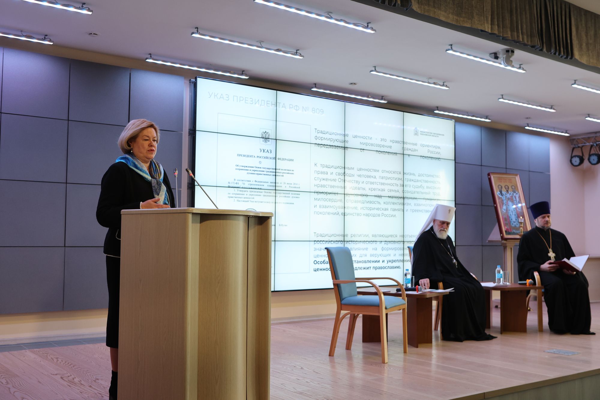 Заместитель министра образования Московской области, начальник управления модернизации системы образования А.В. Гребцова рассказала о мерах, принимаемых правительством для поддержки духовно-нравственного воспитания в учебных заведениях. Она подчеркнула необходимость тесного сотрудничества между государственными органами и Церковью в вопросах образования.