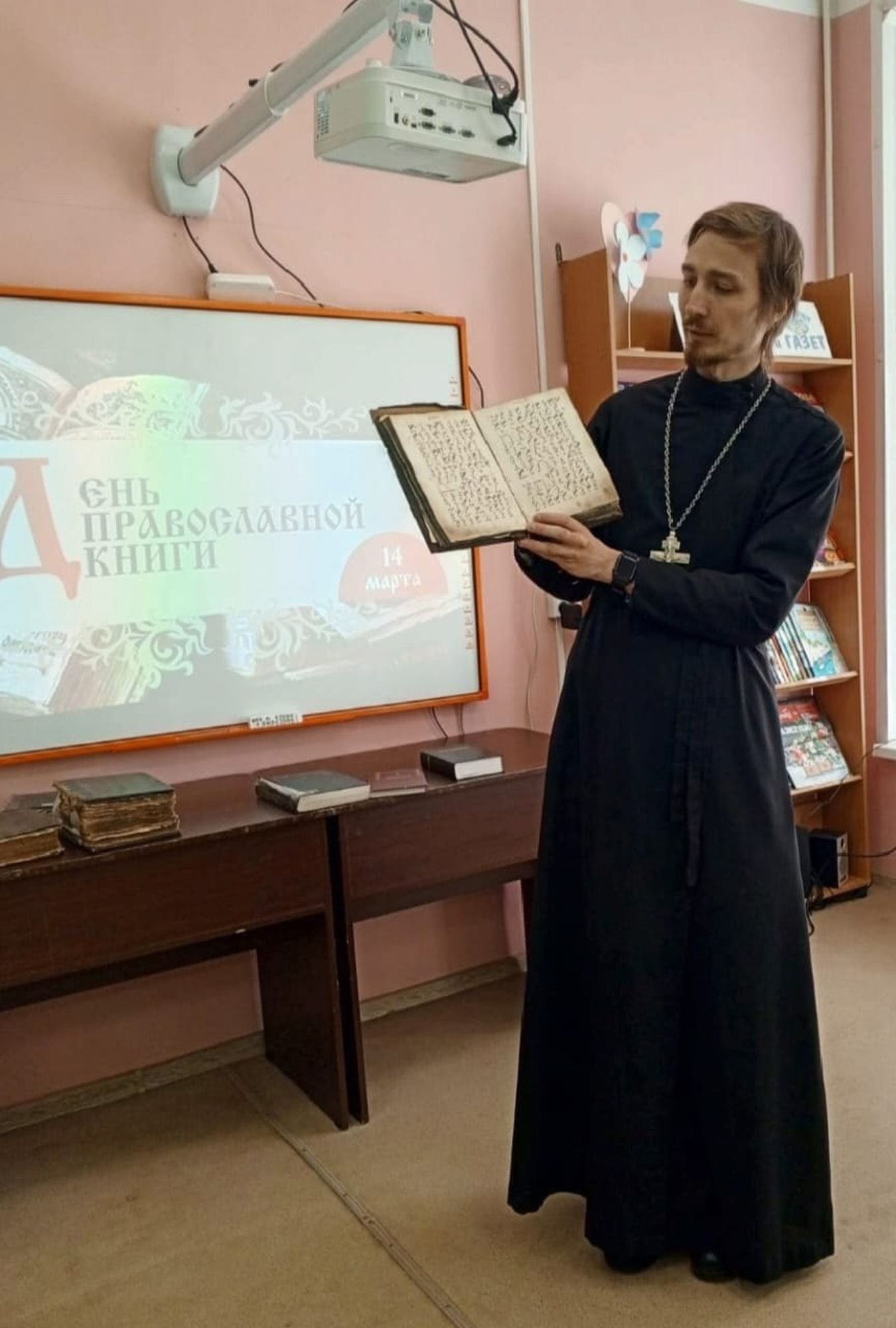 14 марта в стенах Ликино-Дулёвской детской библиотеки состоялась встреча учащихся 4 класса МОУ Ликино-Дулёвская гимназия и ответственного в благочинии по издательской деятельности и СМИ священника Андрея Ходкевича на тему «К духовности через книгу».