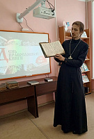 Отец Андрей рассказал о книгопечатании и о православной книге, продемонстрировал старинные и современные издания из приходского музея при Иоанно-Богословском храме г. Ликино-Дулёво, призвал ребят чаще обращаться к духовной литературе, находить в ней ответы на важные вопросы, стремиться к духовной чистоте и нравственному совершенствованию.