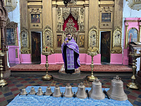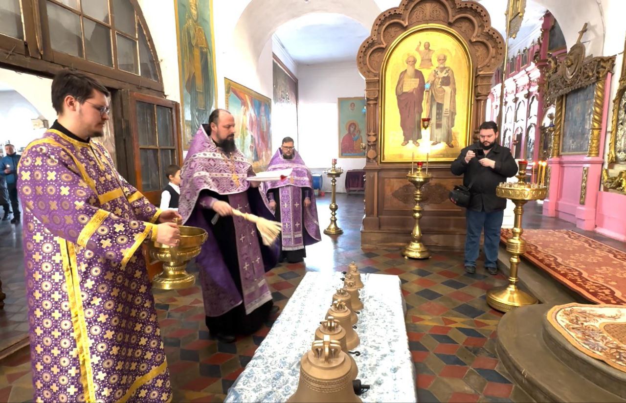 16 марта благочинный 1-го Луховицкого церковного округа иерей Александр Скабелин в сослужении настоятеля Казанского села Долгомостьево иерея Святослава Грибкова совершил торжественное освящение девяти новых колоколов, отлитых для звонницы Казанского храма на колокололитейном заводе «ЛИТЕКС».