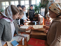 В воскресной школе Иоанно-Предтеченского храма прошло тематическое занятие «Православная книга – духовная ценность». Педагог Крюгер Светлана Владимировна рассказала учащимся историю зарождения и развития книги, славянской азбуке, о первопечатном издании, о первопечатнике – Иване Федорове, а также о значении духовной литературы в жизни православного человека. Ребятам была показаны старинные экземпляры Священного Писания XVIII-XIX веков. Знакомство с такими книгами вызвало у детей большой интерес и воодушевление. Они с большим интересом рассматривали их и читали на старославянском языке. Затем состоялась познавательная викторина, позволившая закрепить полученные знания. По окончании занятия все ребята получили памятные подарки – интеллектуальные игры.