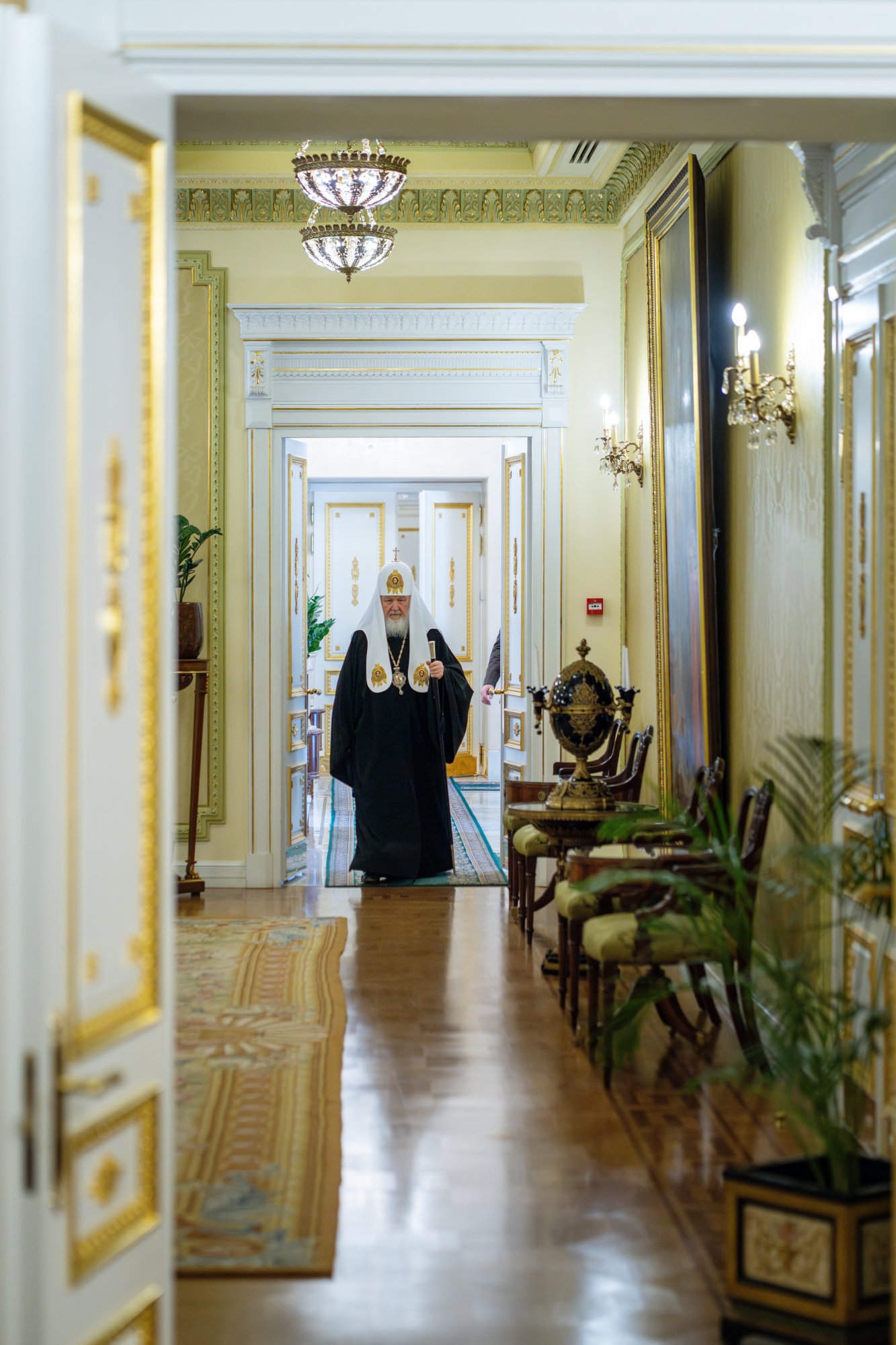 Открывая заседание, Предстоятель Русской Православной Церкви обратился к членам Священного Синода с кратким приветствием, после чего Синод приступил к работе согласно повестке дня.