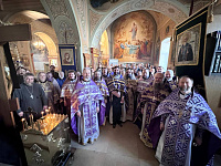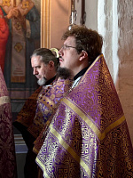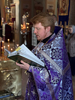 По благословению благочинного церквей Ивантеевского округа протоиерея Иоанна Монаршека Литургию Преждеосвященных Даров возглавил духовник Сергиево-Посадской епархии игумен Сергий (Амуницин). Его высокопреподобию сослужили: настоятель храма протоиерей Илья Зубрий, заместитель благочинного Ивантеевского церковного округа священник Алексий Барашков, а также духовенство благочиния. Диаконский чин возглавил клирик Смоленского храма г. Ивантеевки диакон Николай Лищенюк.