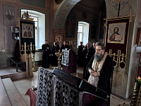 В конце богослужения духовенство совершило славление перед иконой священномученика Василия Херсонесского и заупокойную литию.
