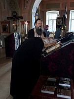 Служение было приурочено к ежегодной исповеди клириков благочиния, которую принимал духовник Сергиево-Посадской епархии игумен Сергий (Амуницин), а также к престольному празднику одного из пределов храма в честь священномученика Василия Херсонесского.
