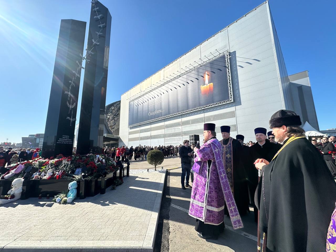 По окончании богослужения архиепископ Фома совершил панихиду на месте трагедии у мемориала в Крокус Сити Холле и обратился к собравшимся со словами проповеди.