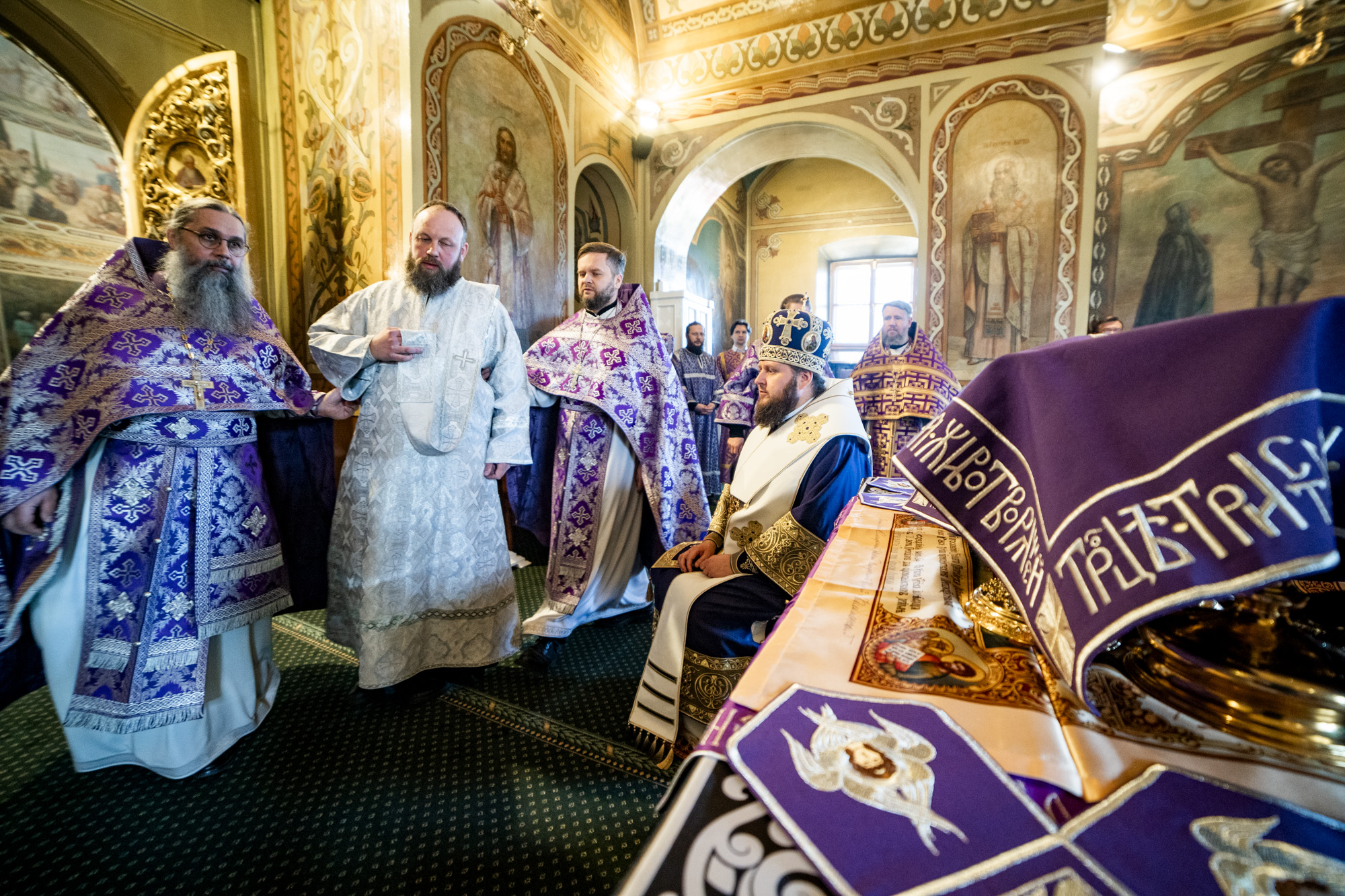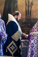 По отпусте Божественной литургии было совершено поклонение Честному Кресту, после чего архиепископ Аксий обратился к молящимся с архипастырским словом.