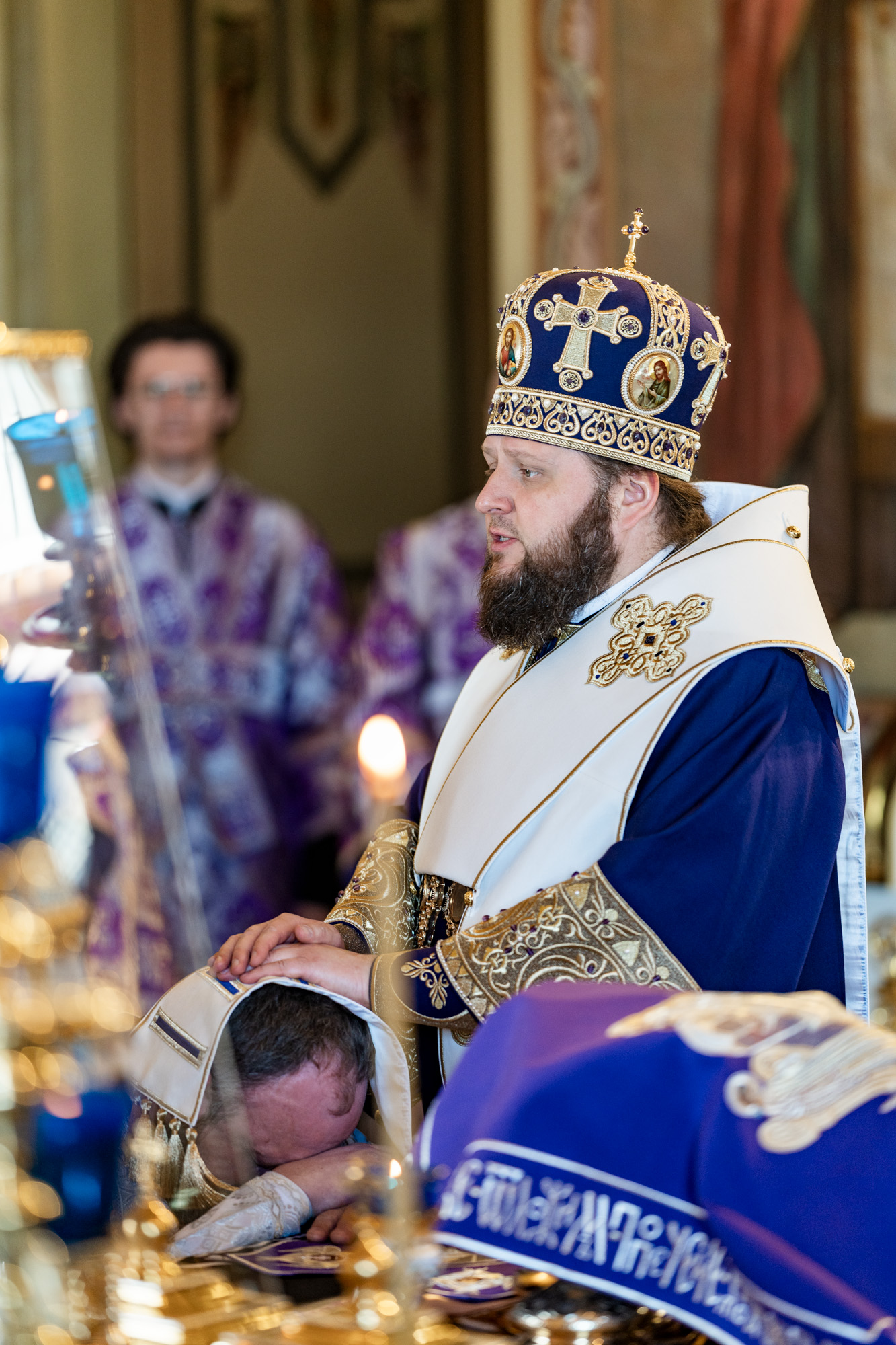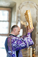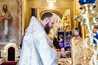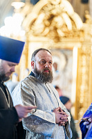По Херувимской песни архиепископ Аксий совершил иерейскую хиротонию диакона Сергия Богачёва.