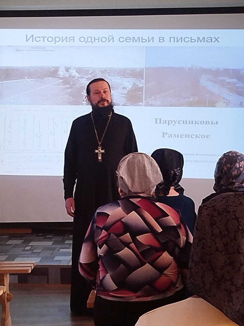 16 марта, в рамках празднования Дня Православной книги, в церковном доме при Никольском храме с. Николо-Крутины состоялась встреча с правнучкой священномученика Александра Парусникова - Дарьей Фомичевой-Парусниковой. Гостья познакомила собравшихся с семейным архивом: письмами, фотографиями, тюремными сообщениями. Завершилось мероприятие чаепитием.
