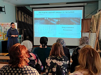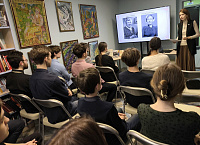 Сотрудник библиотеки Мария Владимировна Мусатова провела для гостей экскурсию по книжным фондам и презентовала творчество поэтесс-блокадниц О.Ф. Берггольц и В.М. Инбер.