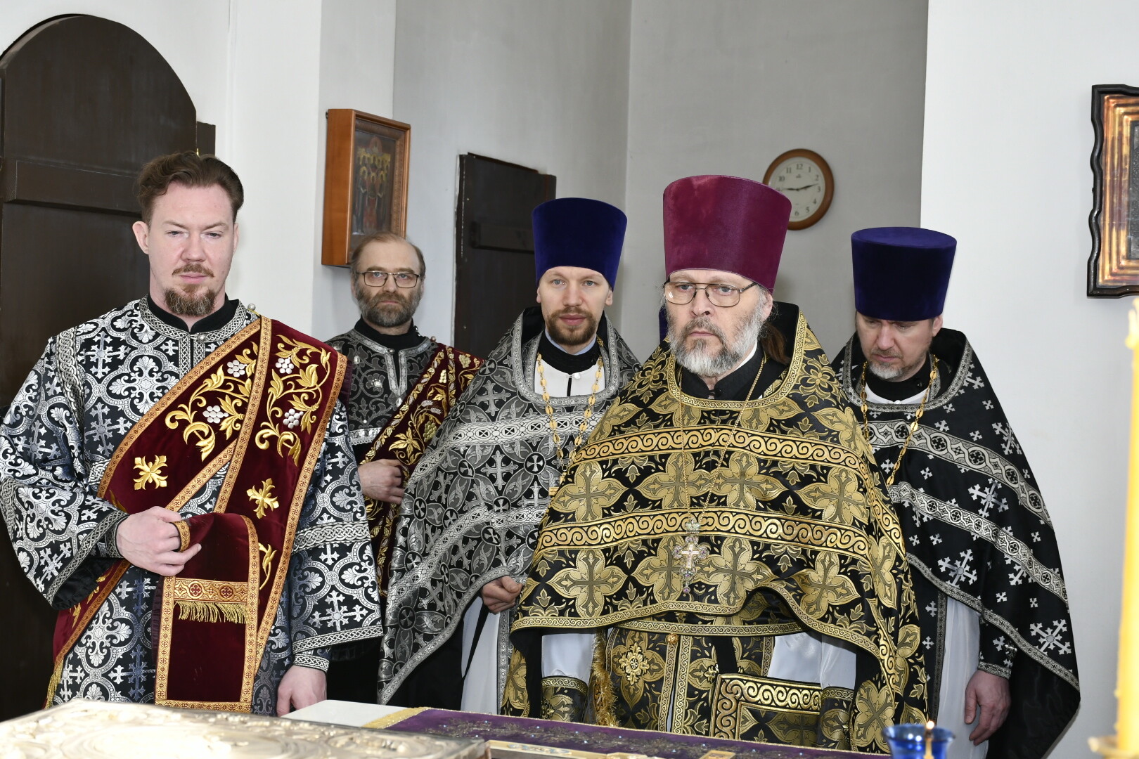 28 марта в Преображенском храме г. Долгопрудный благочинный Долгопрудненского церковного округа протоиерей Андрей Хмызов в сослужении городского духовенства возглавил соборное служение Литургии Преждеосвященных Даров. Затем в помещении воскресной школы состоялось братское совещание.