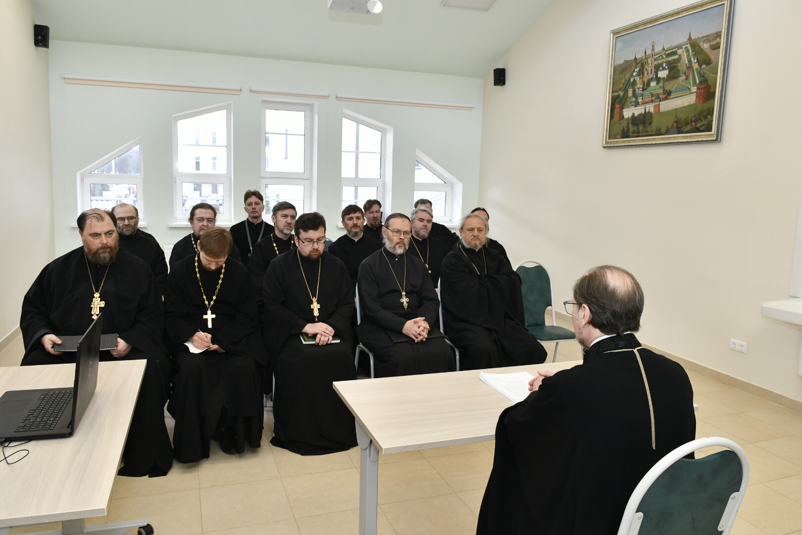 В завершение братского совещания заместитель благочинного, настоятель Георгиевского храма протоиерей Александр Суворкин провел пастырский семинар, выступив с докладом на тему «О возможности светской трудовой деятельности священнослужителей».
