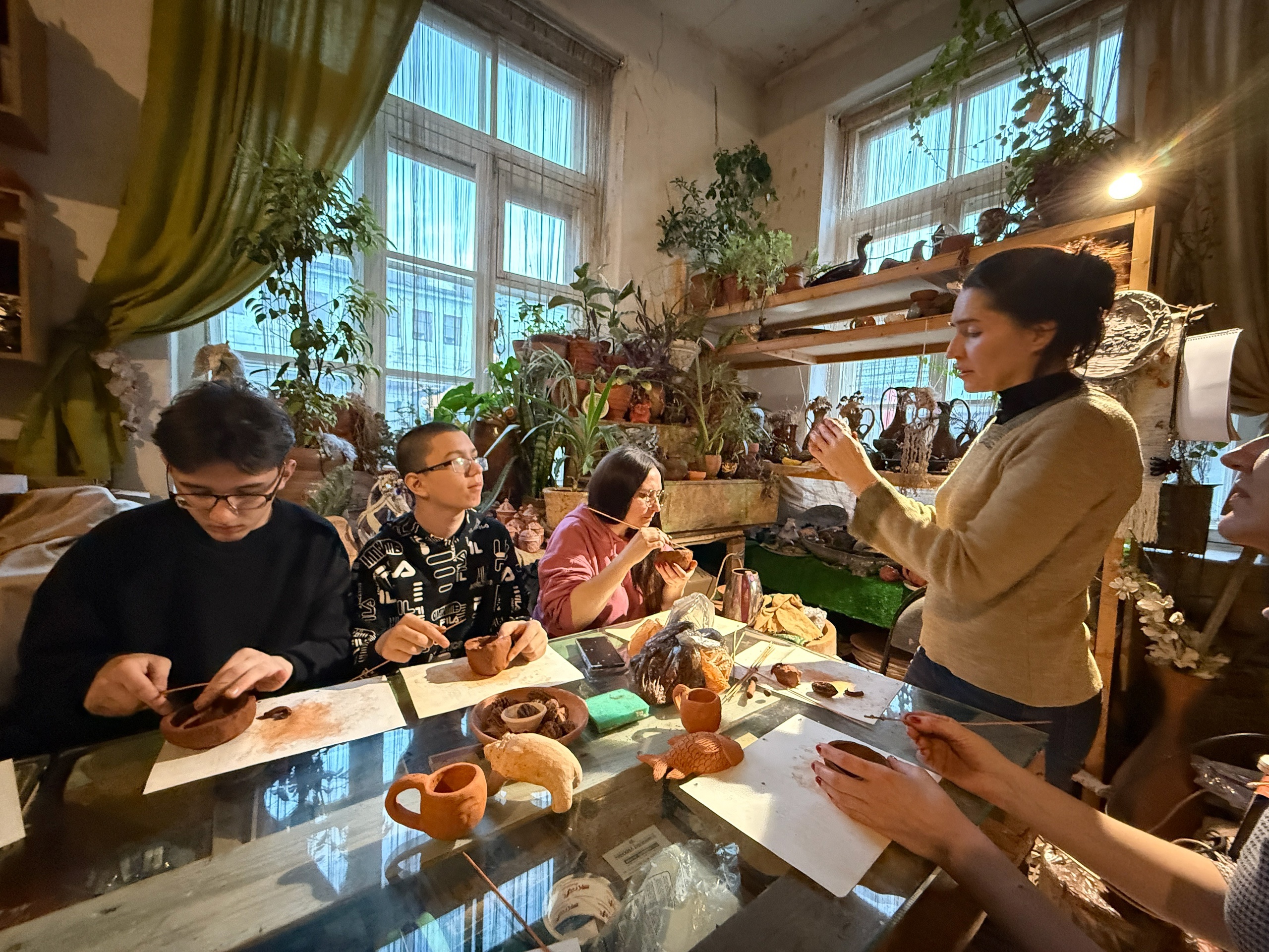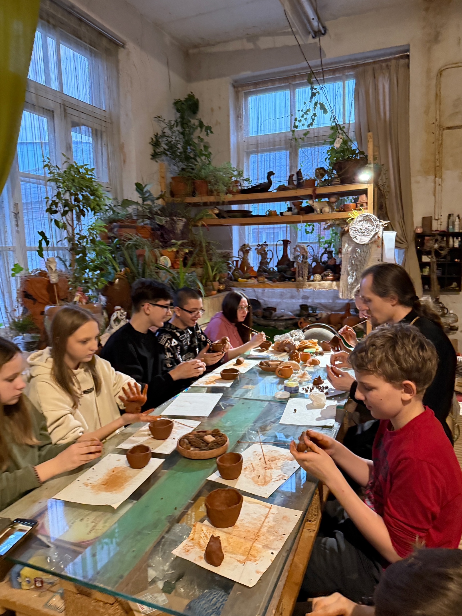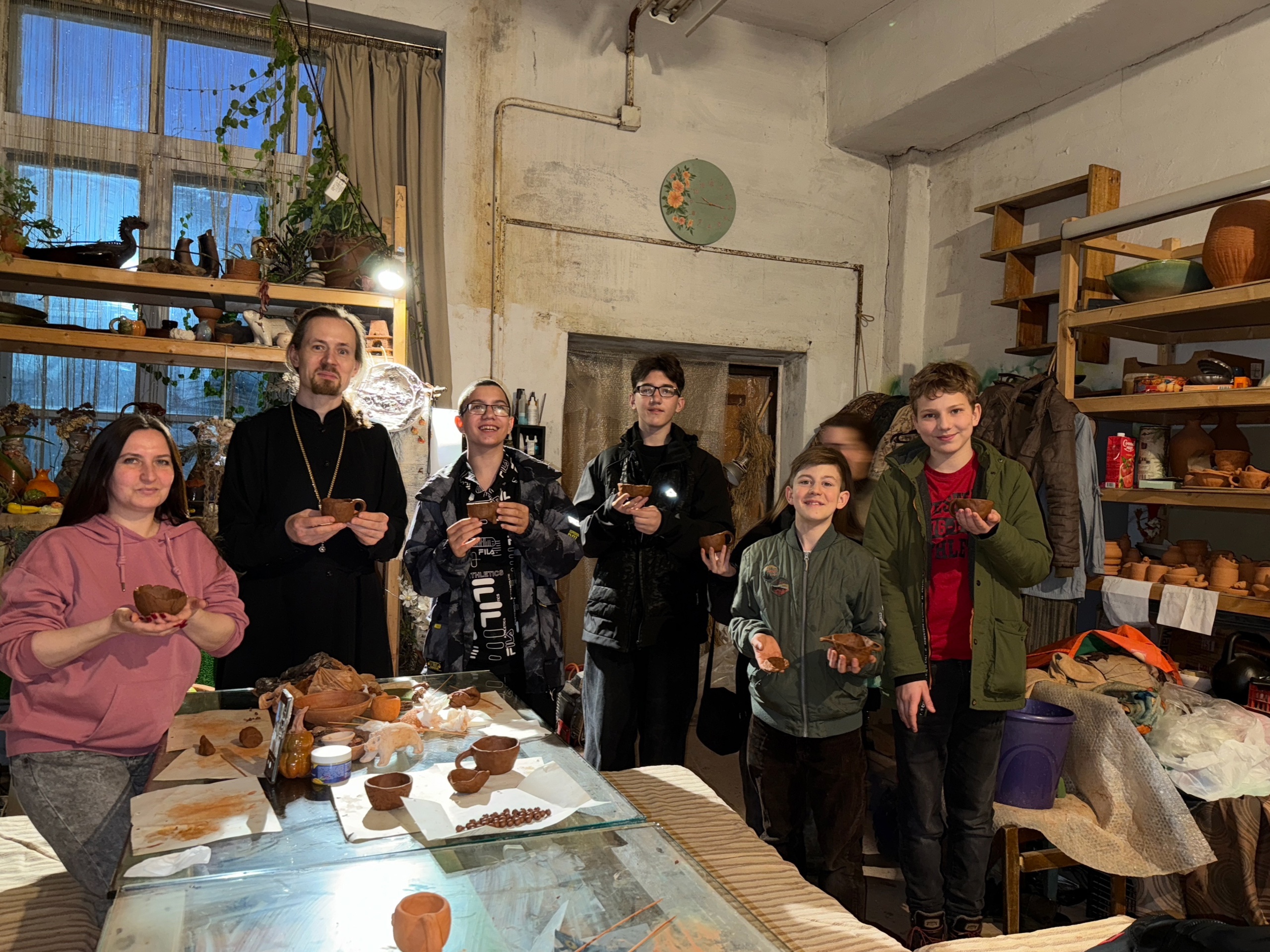 28 марта для участников подросткового клуба прихода Крестовоздвиженского храма города Коломна организована бесплатная экскурсия в гончарную мастерскую. Ребята вместе с родителями под руководством члена Союза Художников России Завацкой Анастасии вместе с родителями научилась работать с глиной, сделали кружки и чётки.