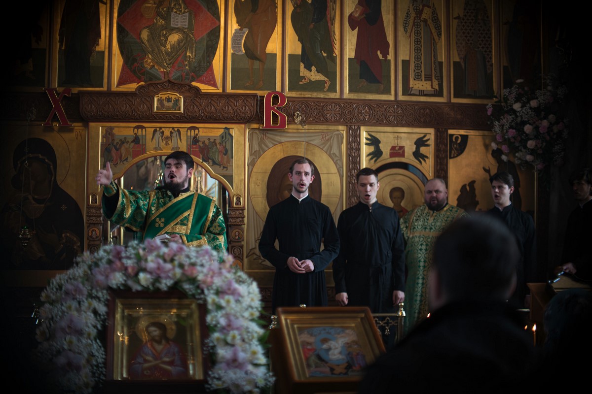 За богослужением пели два хора: квартет студентов Московской духовной академии под управлением Кирилла Трухачева и приходской хор (регент - Георгий Трухачев).