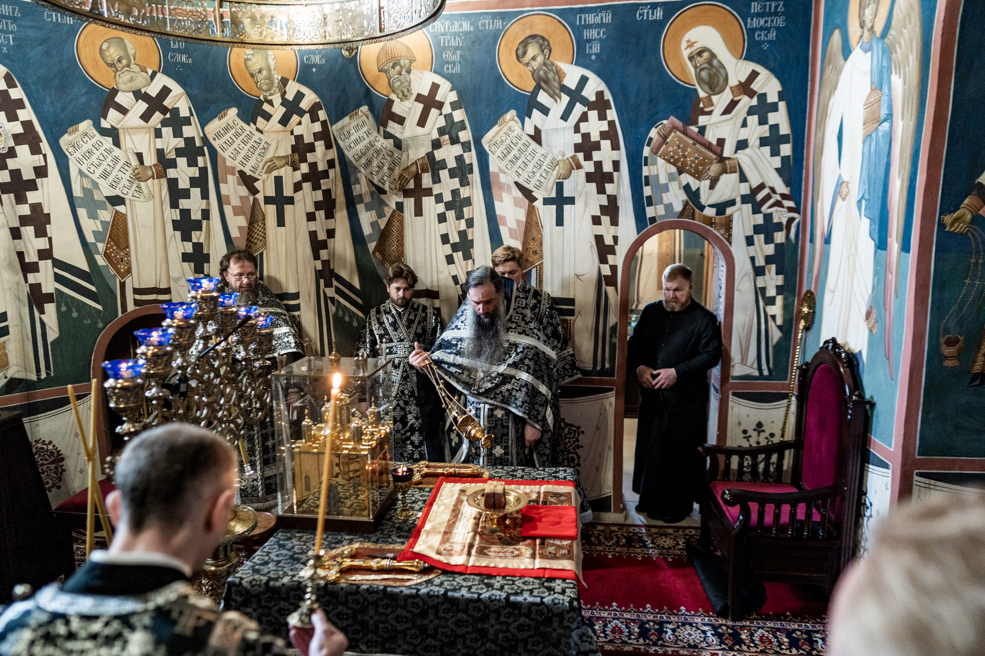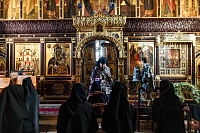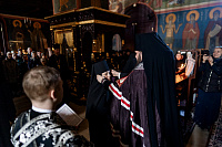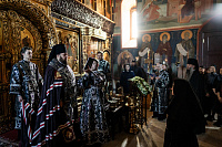 Богослужебные песнопения исполнил хор Владычнего монастыря под управлением игумении Алексии (Петровой).