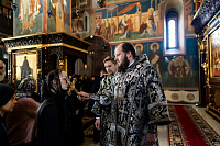 3 апреля, в четверг 5-й седмицы Великого поста, архиепископ Подольский и Люберецкий Аксий совершил литургию Преждеосвященных Даров во Владычнем монастыре города Серпухова.