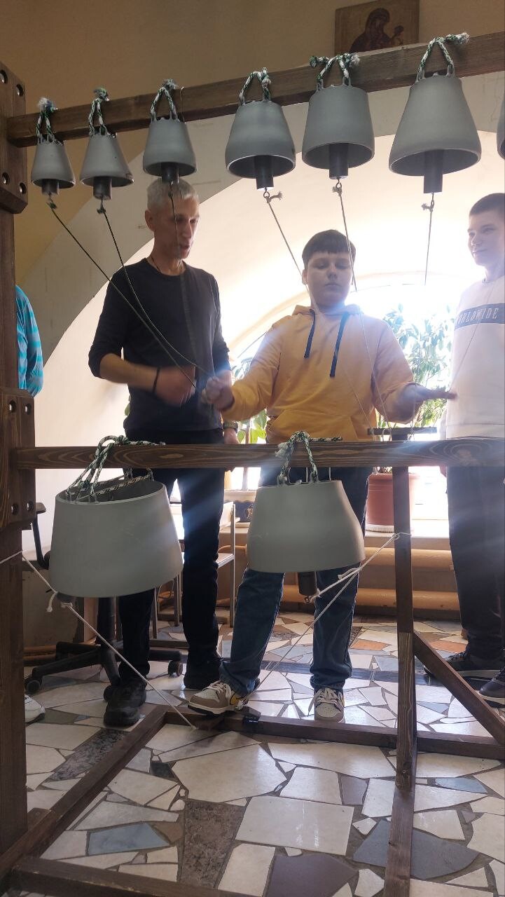 Во время занятия дети и подростки под руководством инструкторов смогли попробовать себя в роли звонарей на нескольких вариантах мобильных звонниц. В мероприятии принимал участие клирик Владимирского храма священник Кирилл Трофимов и коллектив звонарей прихода. Воспитанники и их родители высказали большое пожелание продолжить обучение.