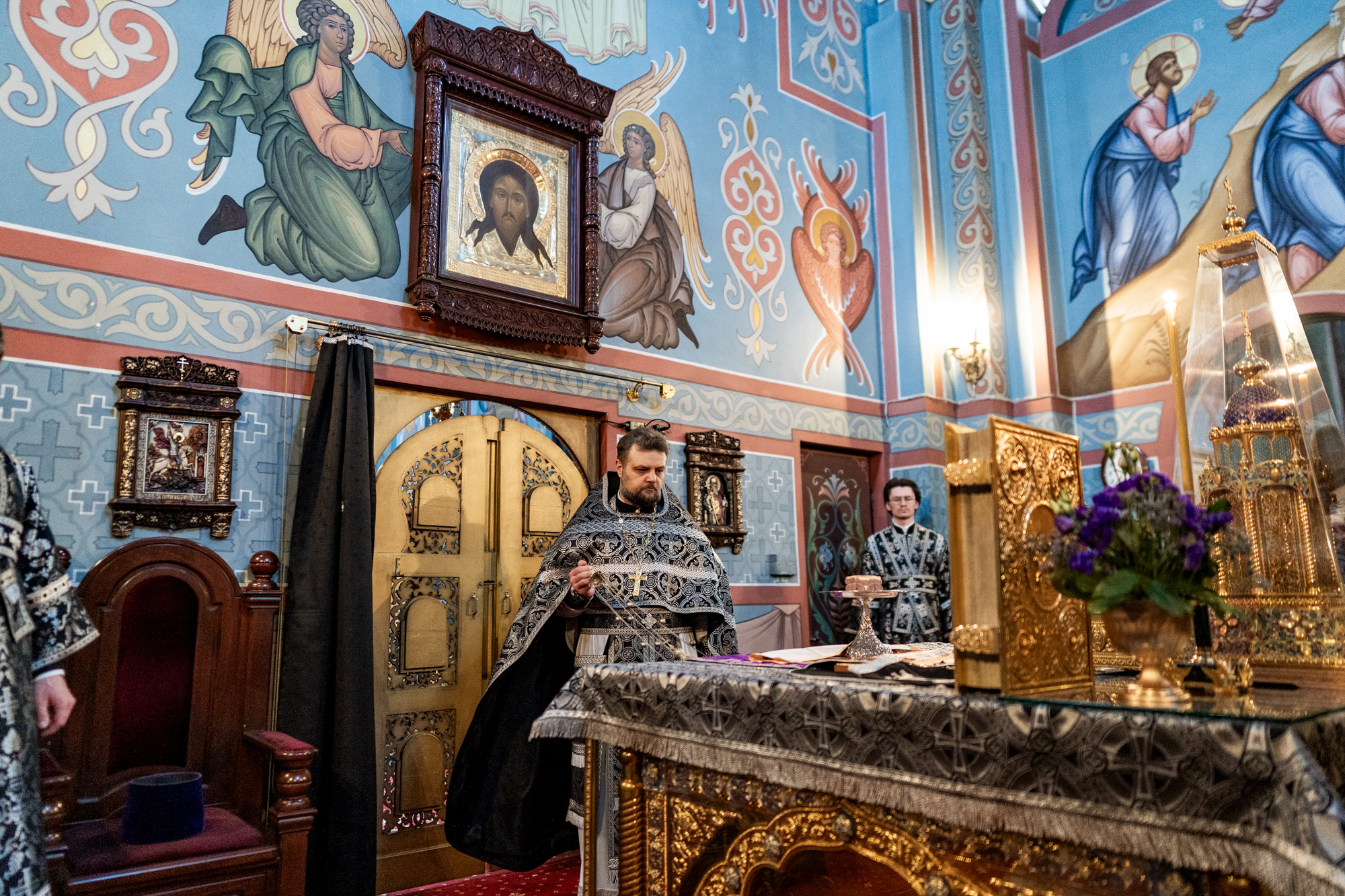 Богослужебные песнопения исполнил архиерейский хор под управлением Ярослава Филипсонова.
