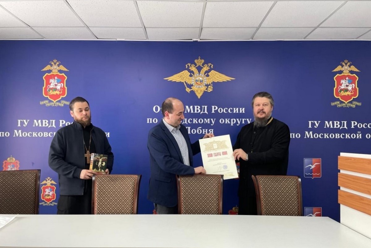 По благословению епископа Сергиево-Посадского и Дмитровского Кирилла благословенная грамота Сергиево-Посадской епархии была вручена начальнику ОМВД по г.о. Лобня Владимиру Степановичу Демурчяну.