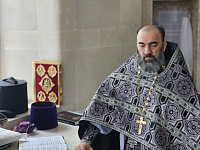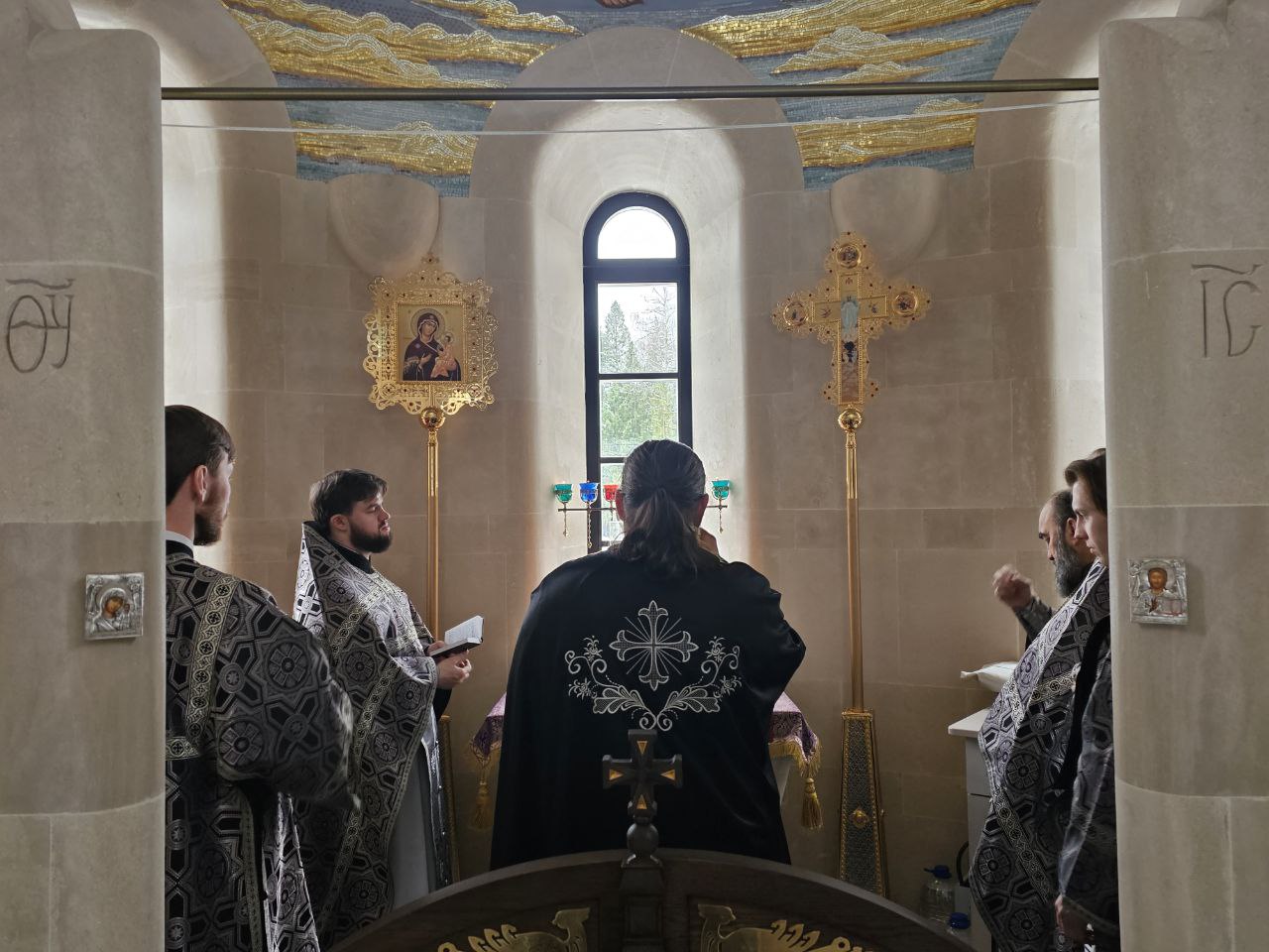 В конце Божественной литургии настоятель тепло приветствовал отца Димитрия, после чего духовенство совместно осмотрело строящийся храм Покрова Пресвятой Богородицы.