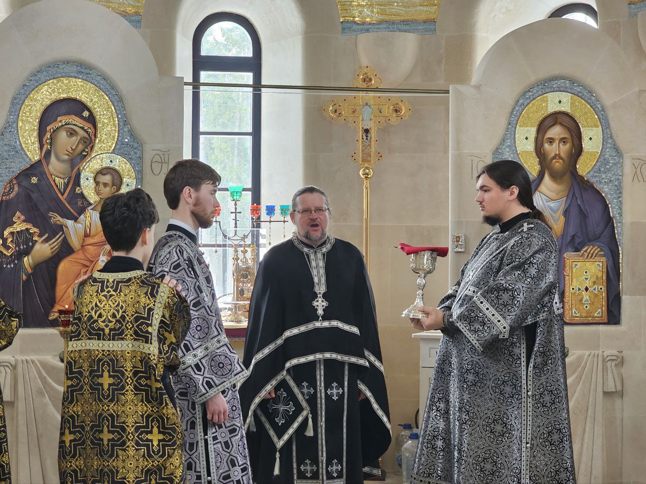 11 апреля 2025 года, в пятницу 6-й седмицы Великого поста в Богоявленском храме Покровского прихода пос. Туристический пансионат "Клязьминское водохранилище" г.о. Мытищи Литургию Преждеосвященных Даров возглавил благочинный Мытищинского церковного округа протоиерей Димитрий Оловянников. Ему сослужили настоятель, протоиерей Иоанн Драган, и клирики благочиния.