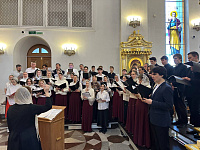 За Литургией пел молодежный сводный хор западного викариаства, под управлением регента Варвары Волковой