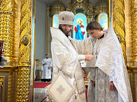После Великого входа была совершена пресвитерская хиротония диакона Вадима Курова.