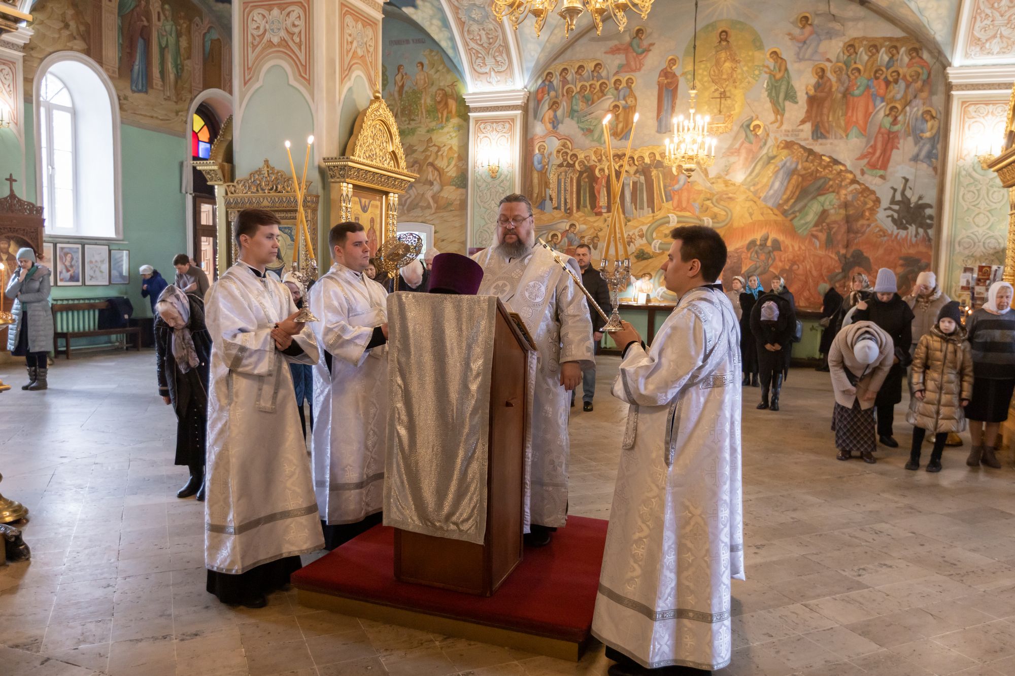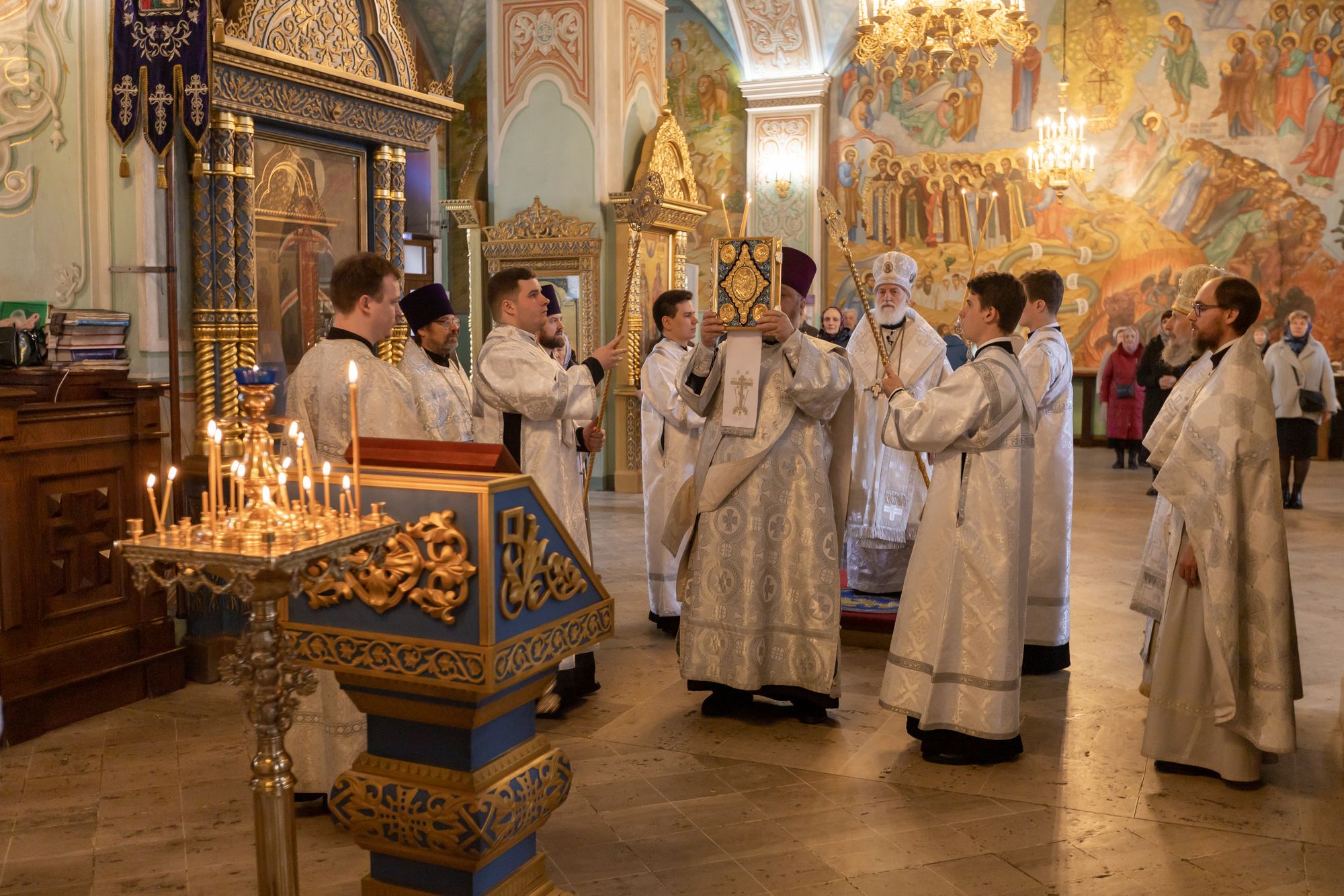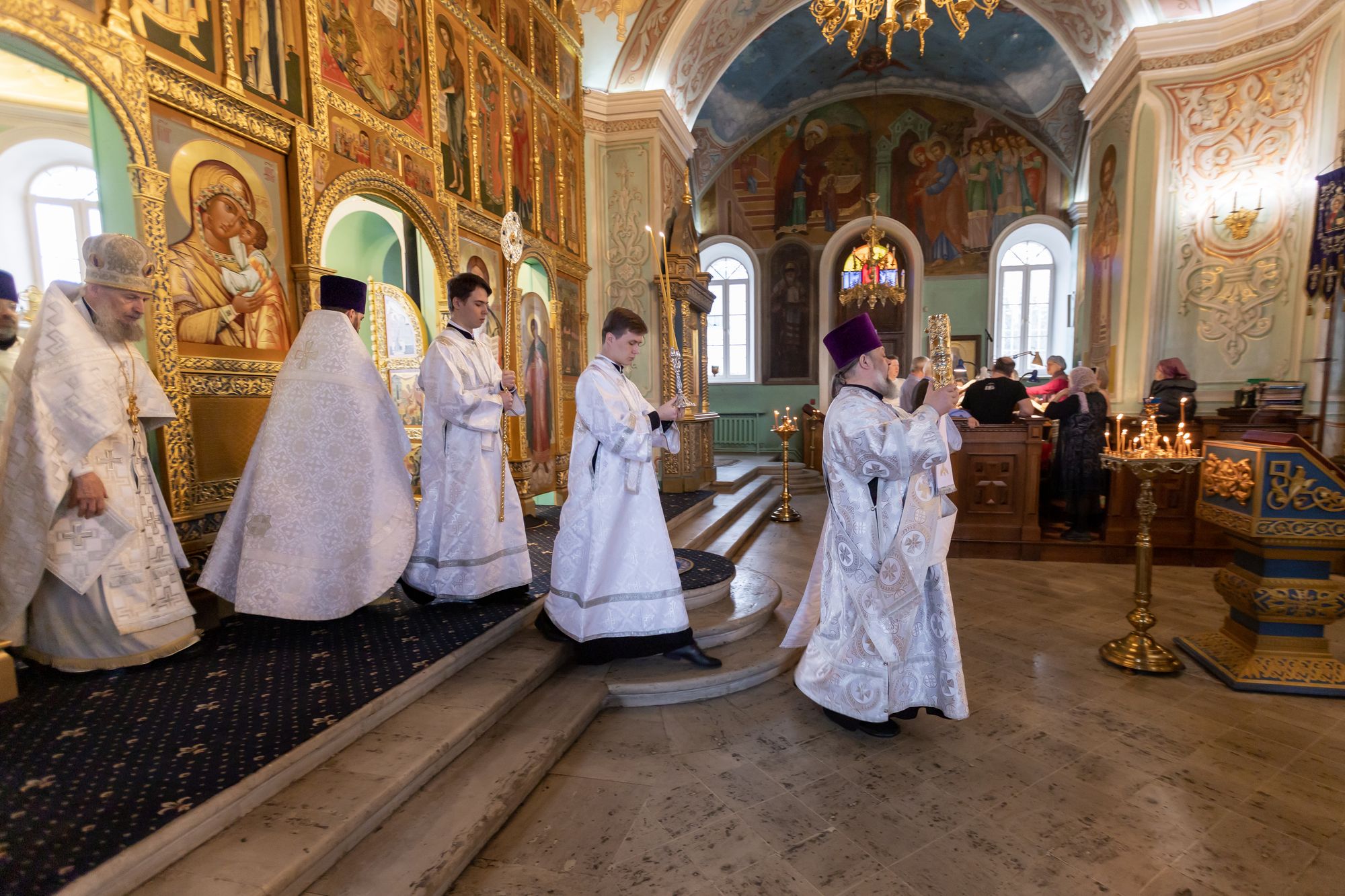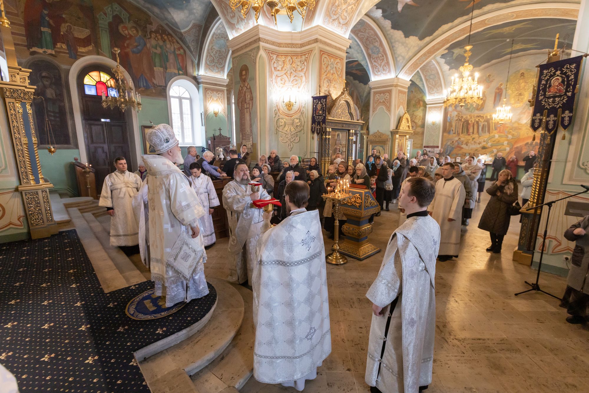 12 апреля 2025 года, в Лазареву субботу, память воскрешения праведного Лазаря, митрополит Крутицкий и Коломенский Павел возглавил Божественную литургию в Тихвинском храме Успенского кафедрального собора города Коломны.