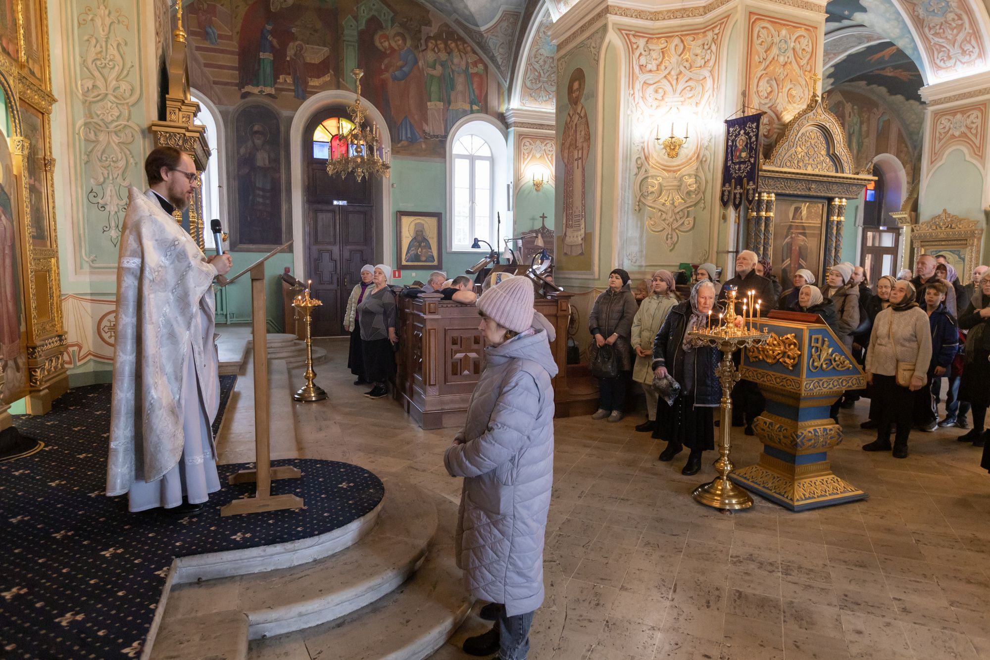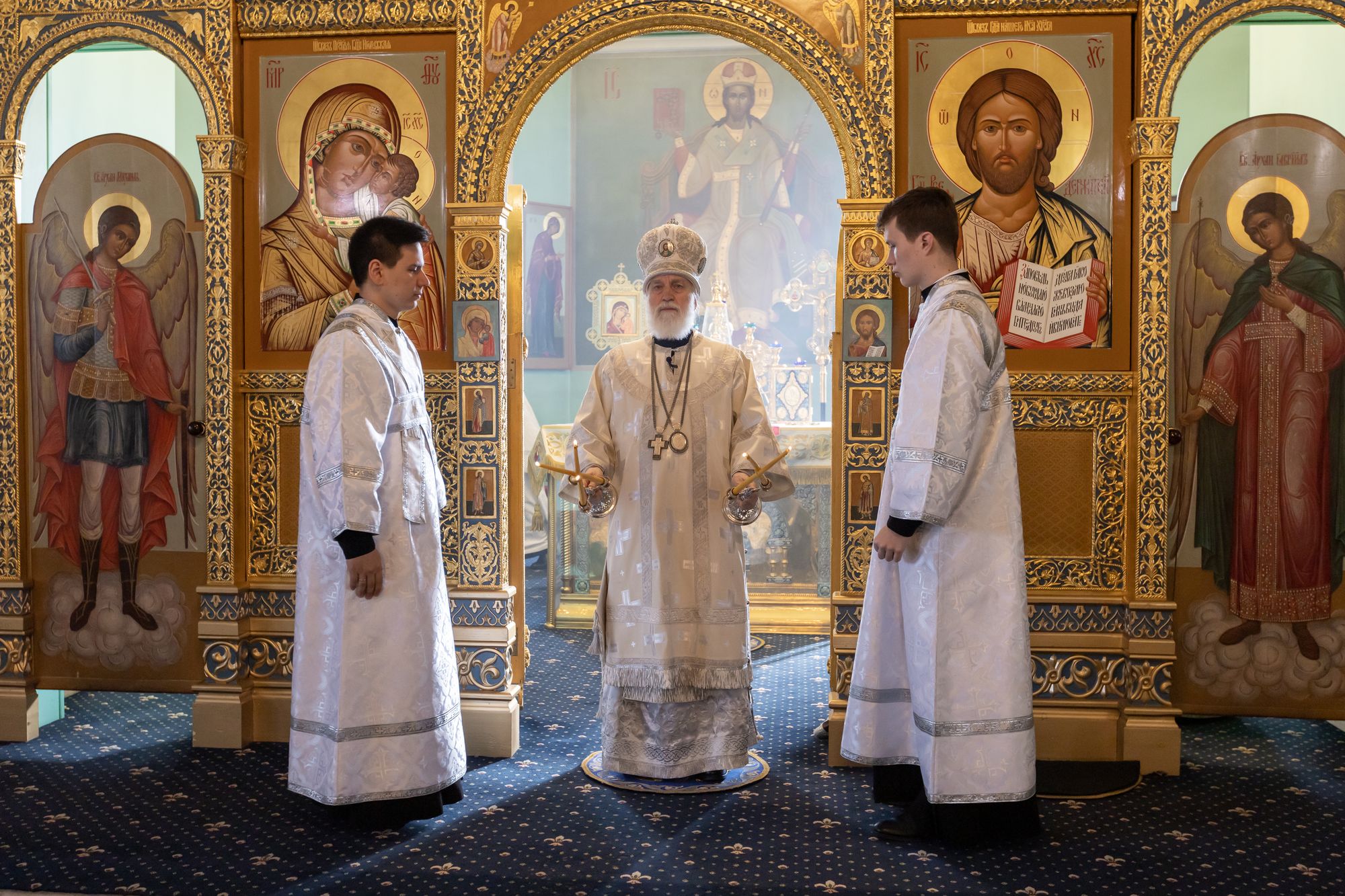 Богослужебные песнопения исполнил соборный хор под управлением Натальи Камышниковой.