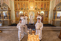 Его Высокопреосвященству сослужили: секретарь Коломенского епархиального управления, ключарь кафедрального собора иерей Андрей Згонников и клирики собора.