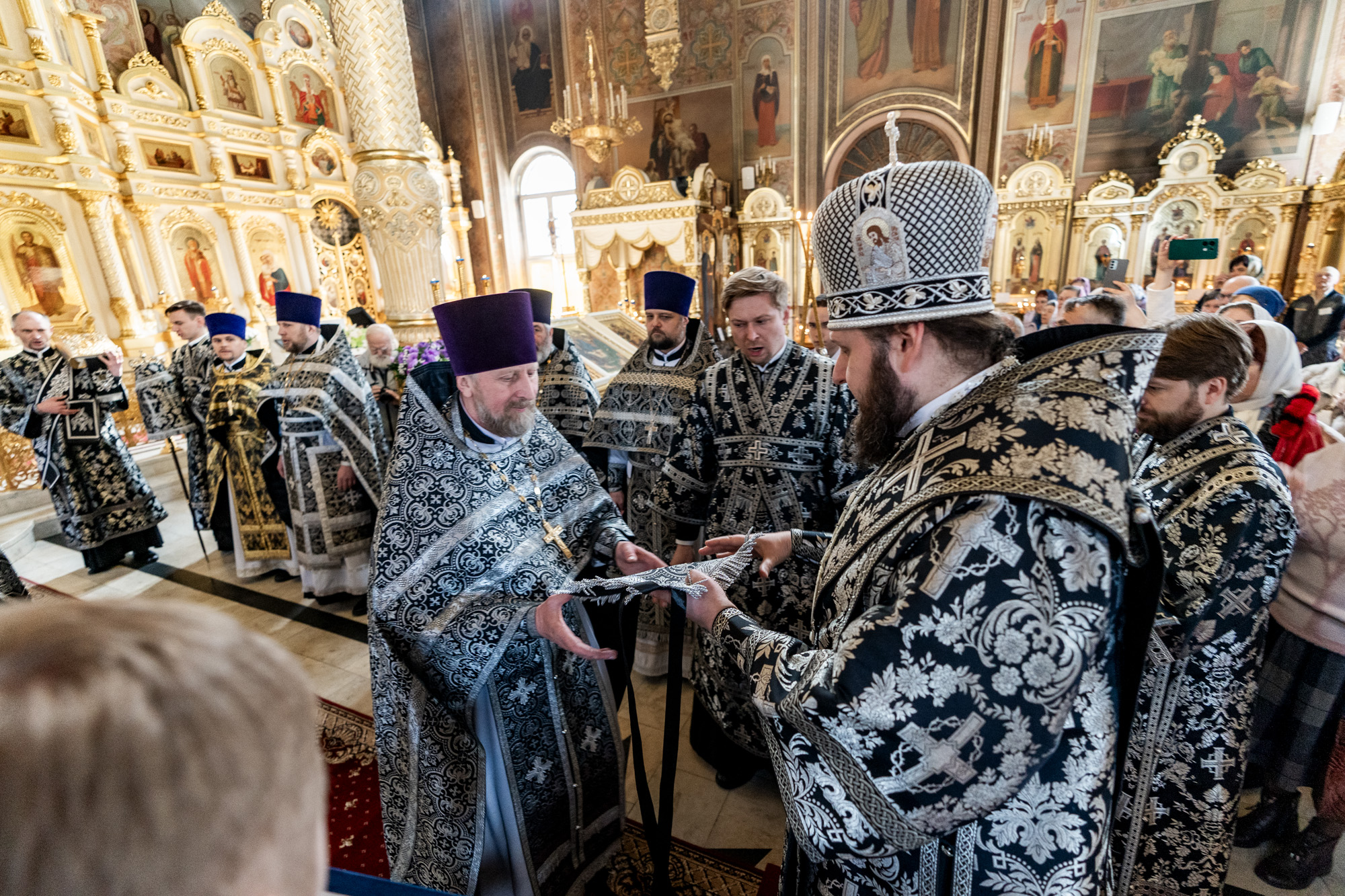 15 апреля, в Великий Вторник, архиепископ Подольский и Люберецкий Аксий совершил литургию Преждеосвященных Даров во Всехсвятском храме города Серпухова.