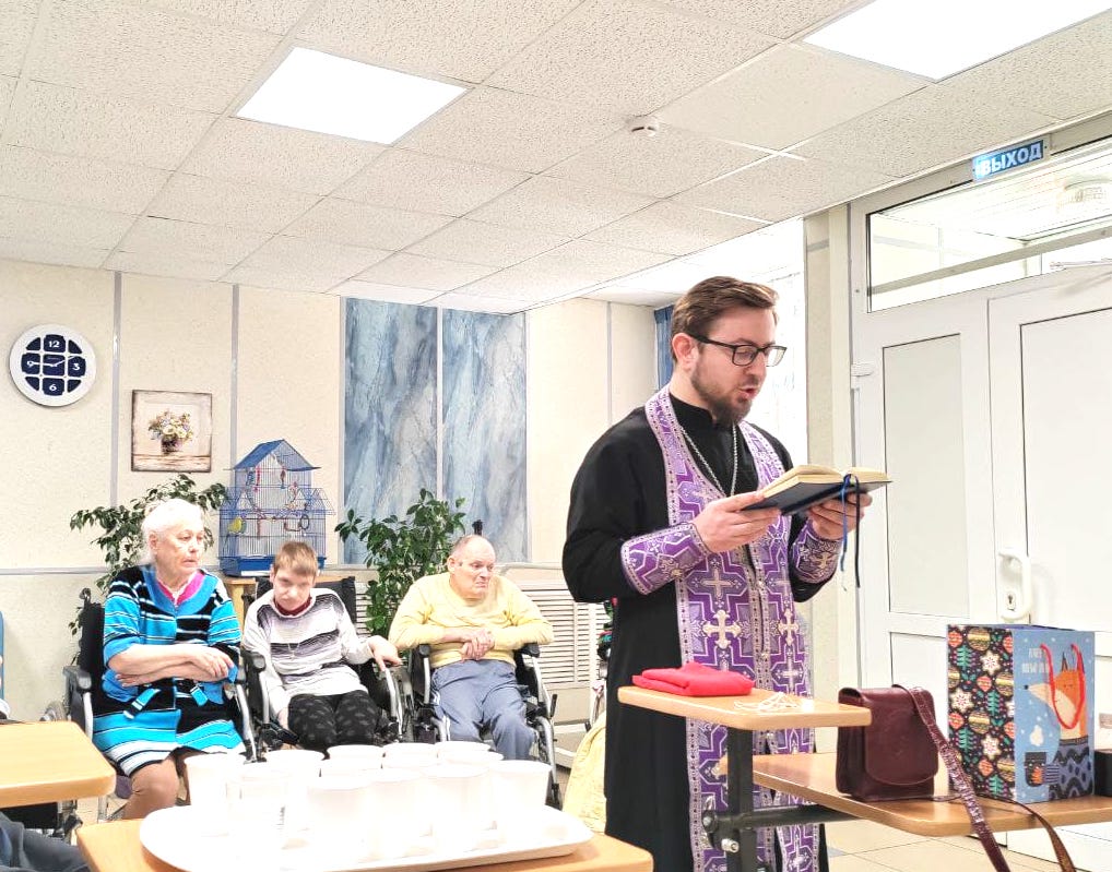 В ходе посещения отец Иоанн совершил Таинство Соборования для проживающих в интернате. Затем состоялось посещение тяжкоболящих, с которыми были проведены беседы и совершены Таинства Причастие и Соборование.
