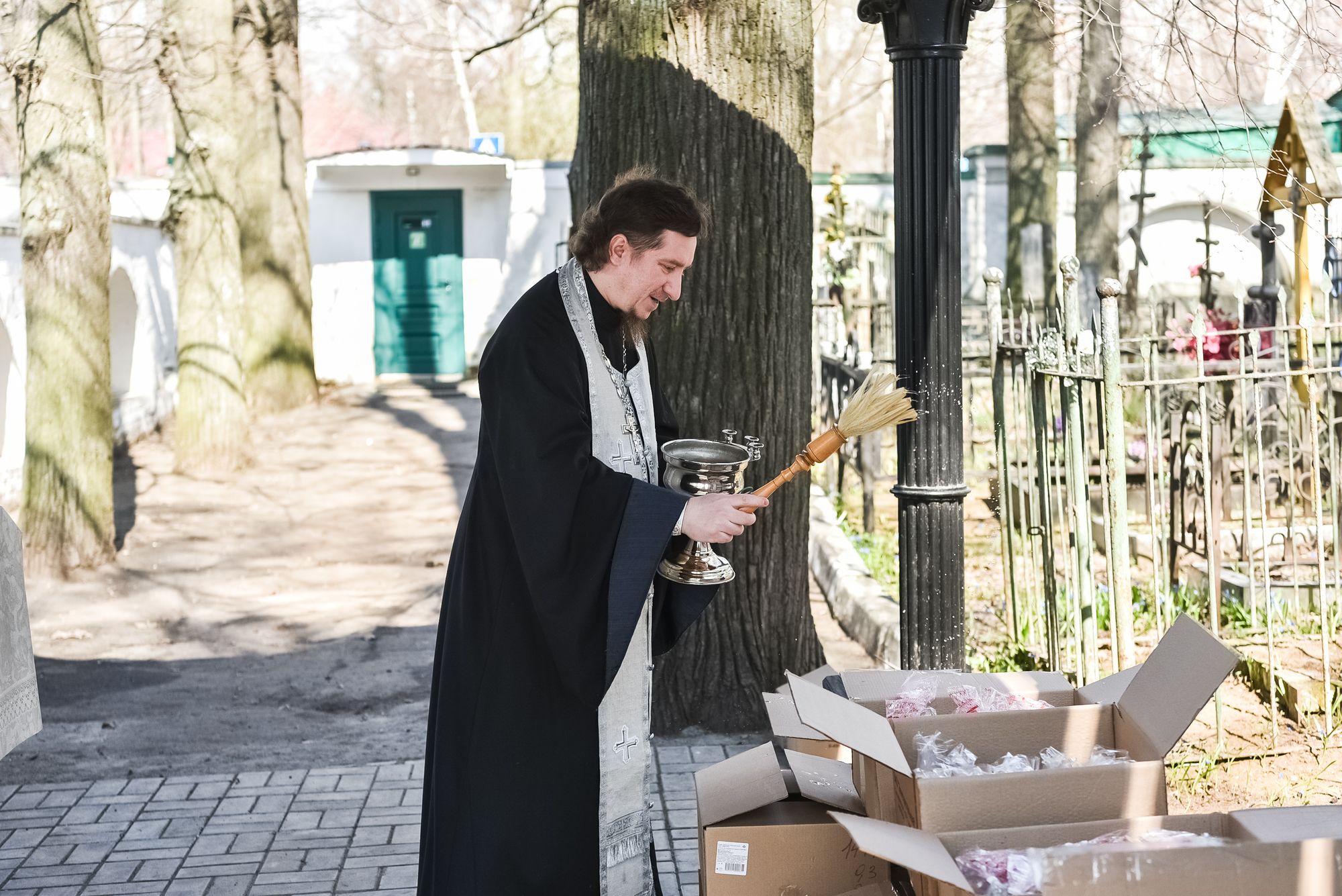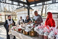 По их просьбе настоятель храма иеромонах Лазарь (Беломоин) совершил молитву благословения куличей, которые будут безвозмездно переданы нуждающимся в особом внимании, в том числе семьям мобилизованных воинов.