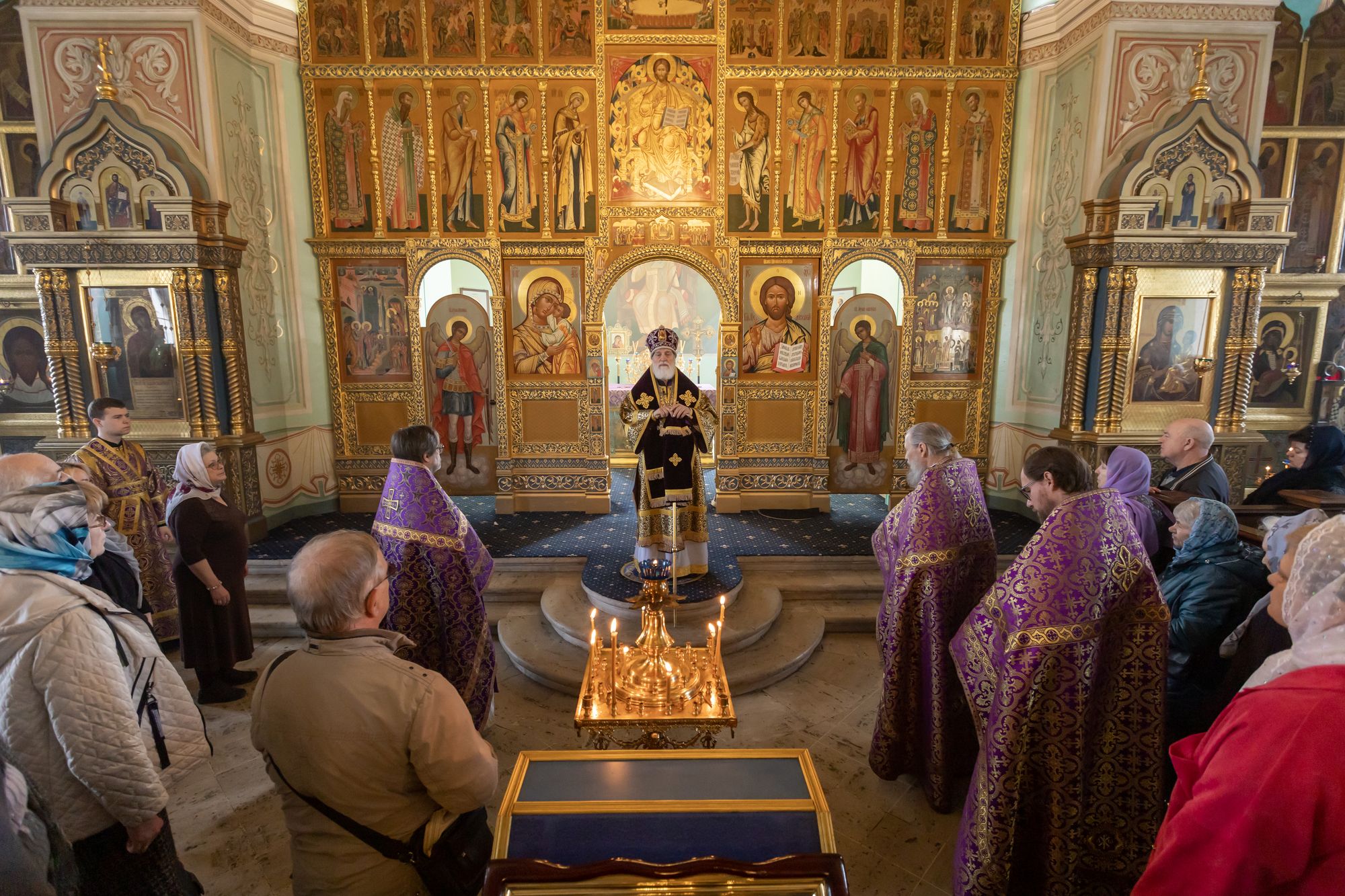 Богослужебные песнопения исполнил соборный хор под управлением Натальи Камышниковой.